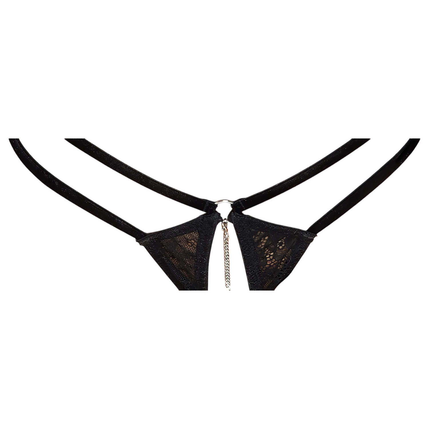 • 1 string en dentelle ouvert à l'entrejambe avec chaîne argentée