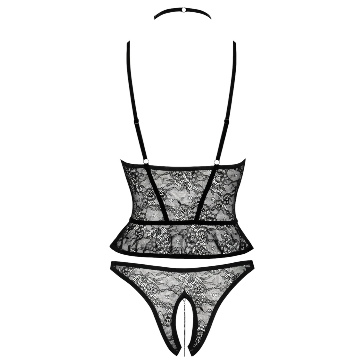 Bustier ouvert en dentelle envoûtante avec string assorti - Abierta Fina string ouvert et bustier, pour révéler votre côté le plus séduisant !