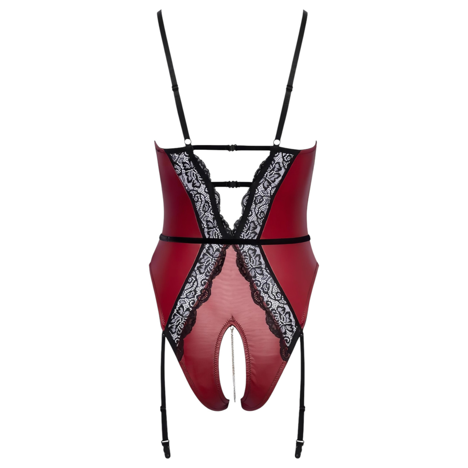 Body ouvert avec la combinaison irrésistible de rouge et noir, accentué par des détails en strass – Body ouvert Abierta Fina avec décoration en chaîne