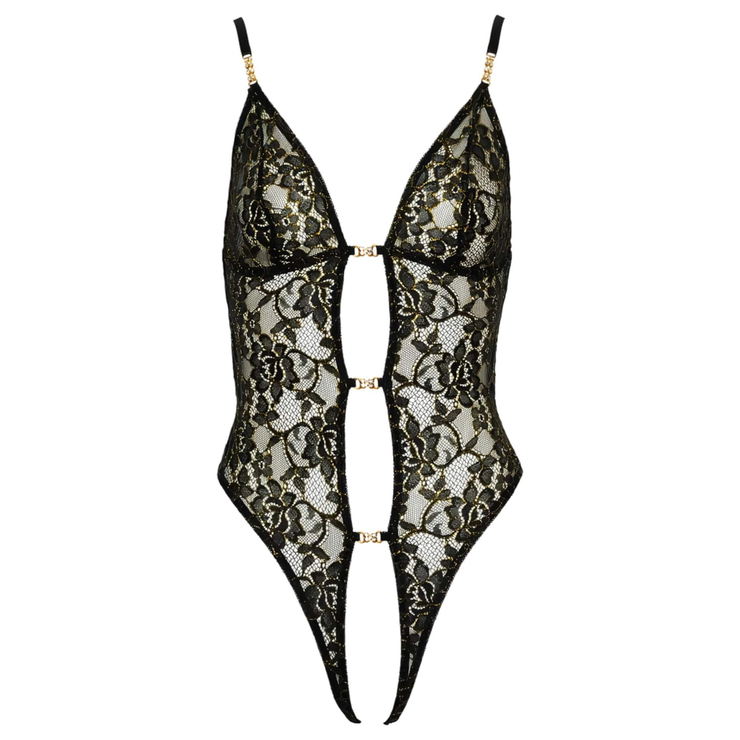 Body ouvert avec ornementation dorée scintillante - le body ouvert en dentelle avec strass d'Abierta Fina est la combinaison parfaite de glamour et d'érotisme!
