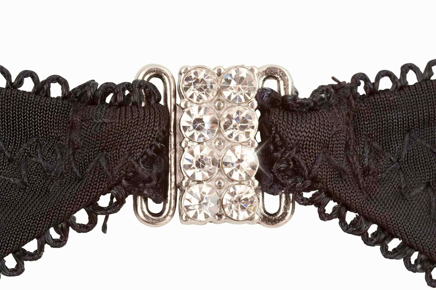 • 1 porte-jarretelles avec bretelles réglables et fermoir orné de strass scintillants