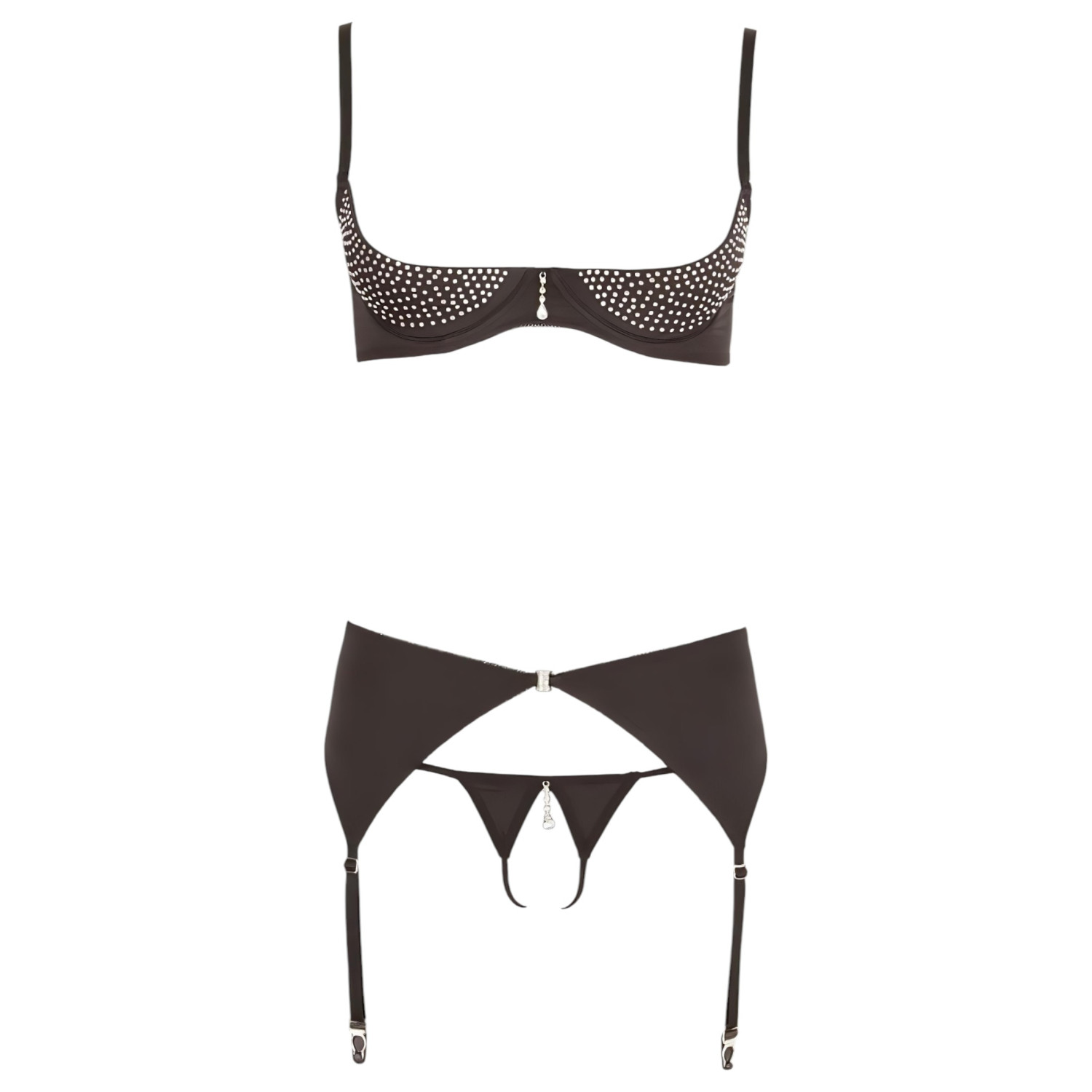 Ensemble Lingerie Éclatante avec Pierres (Noir) - 80C/M
