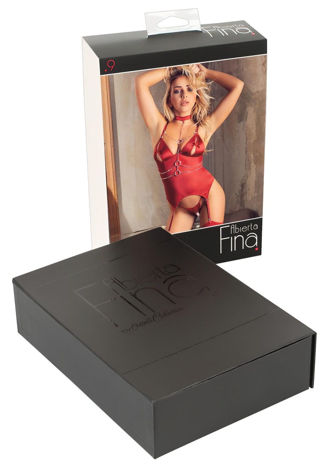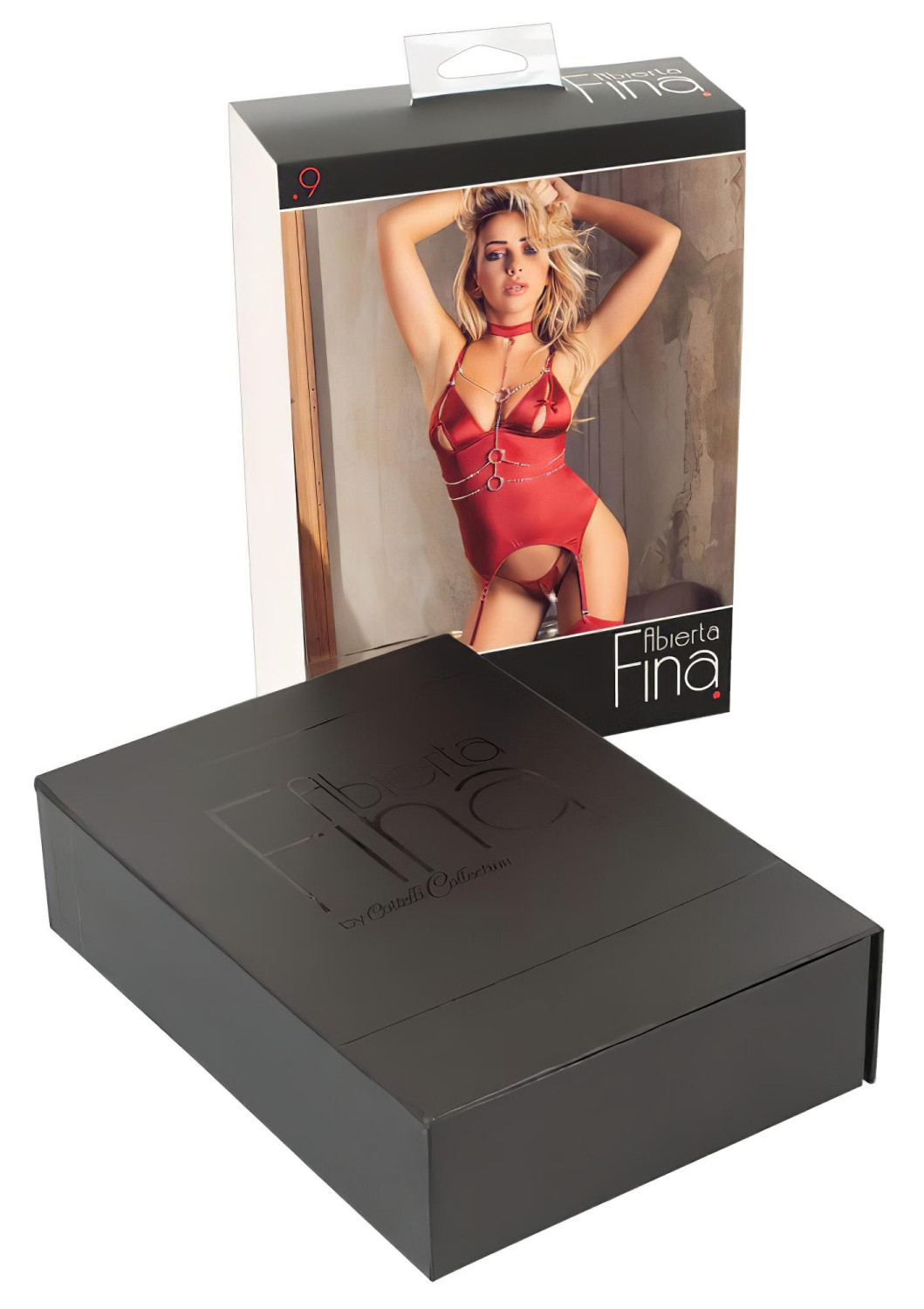 Avis Abierta Fina - haut à chaînes et string scintillants (rouge) - XL