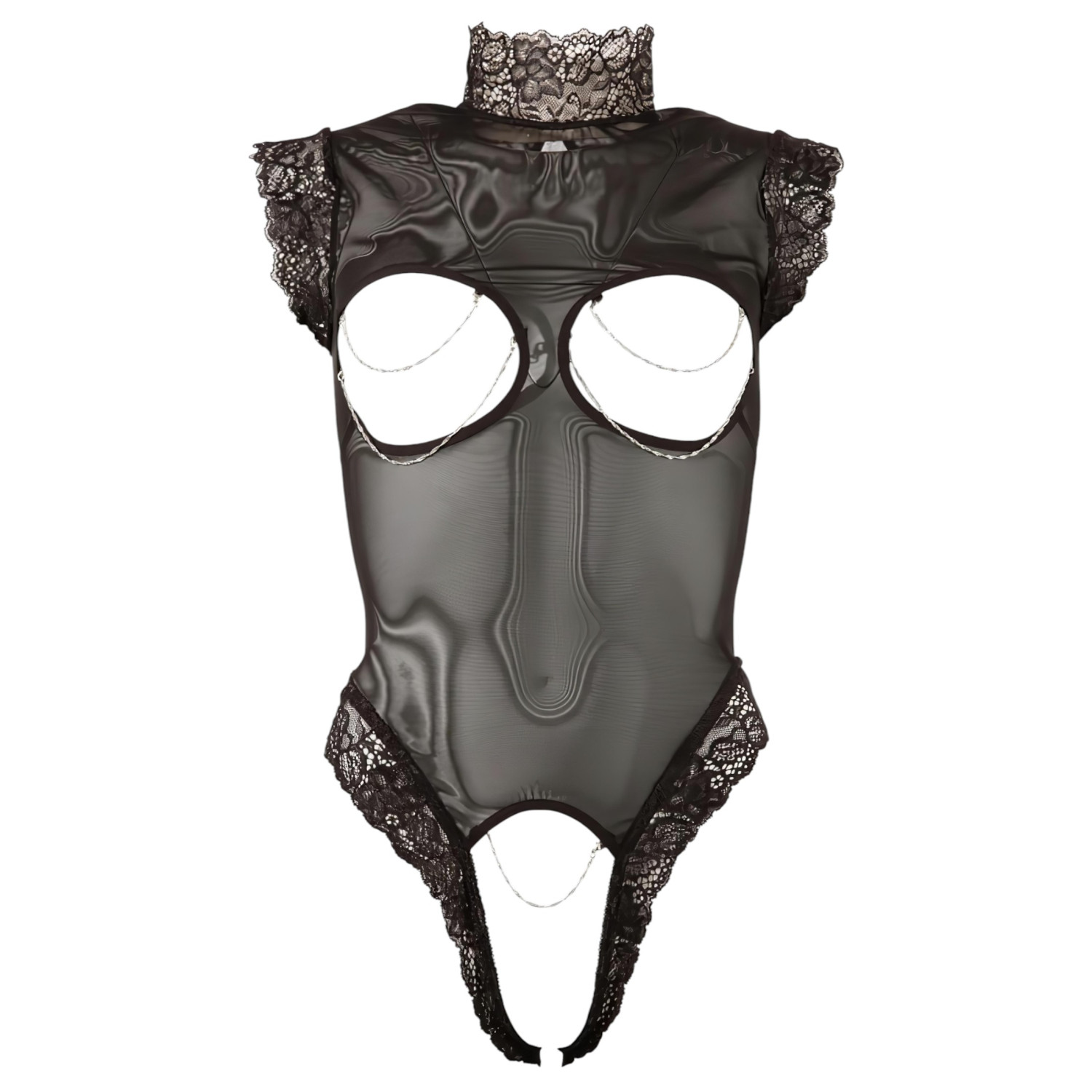 Ce body ouvert est à la fois élégant et furieusement érotique. Les détails en dentelle apportent une sophistication féminine, tandis que le tissu transparent et les décorations amovibles en chaîne garantissent une expérience inoubliable.