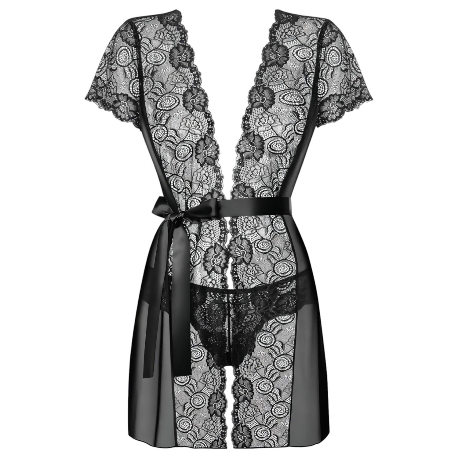 Obsessive Alluria - peignoir dentelle et string (noir)