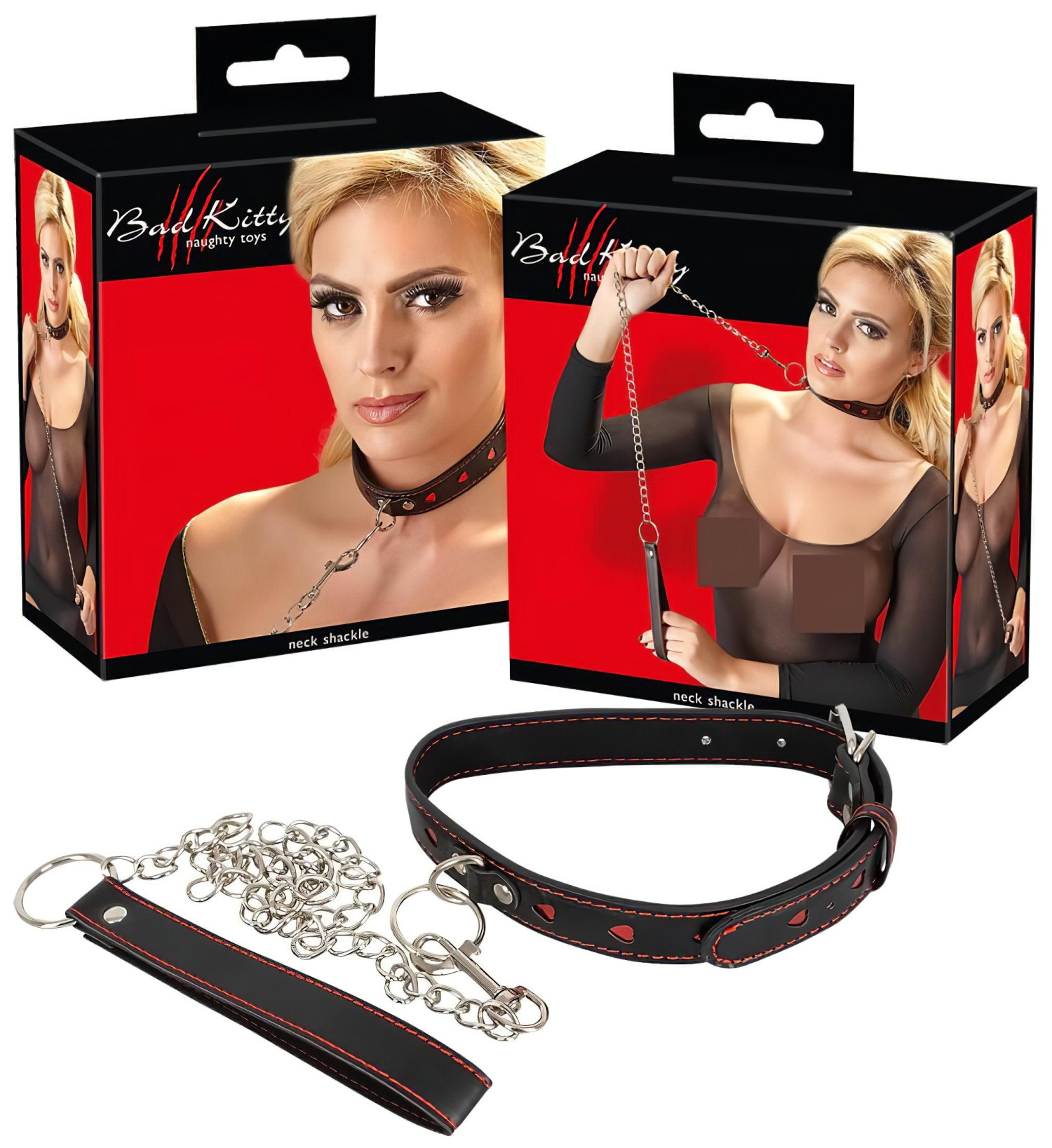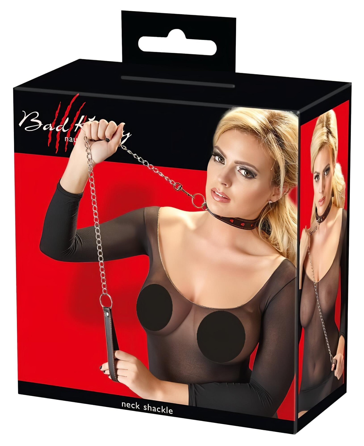 Bad Kitty - collier cœur et laisse métallique (noir)