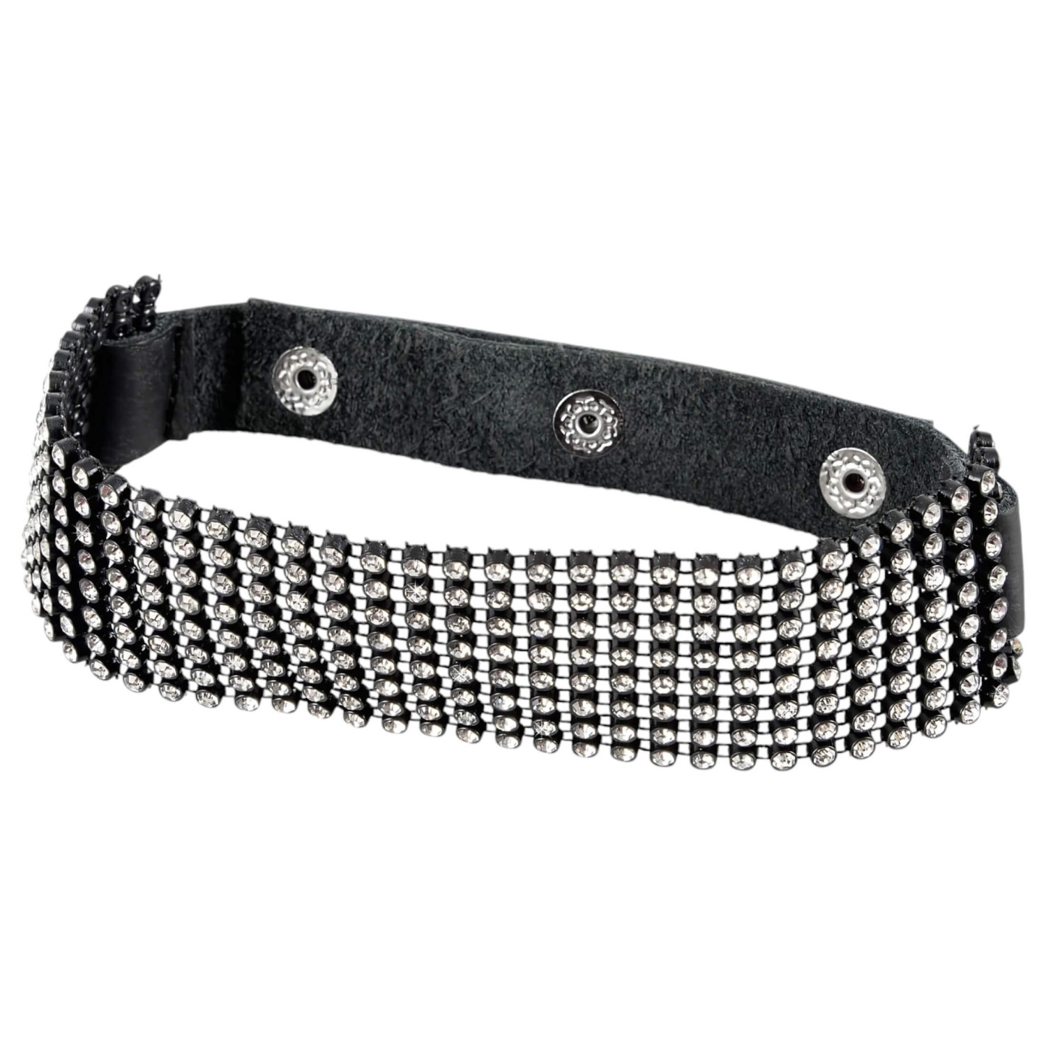 • 1 choker en cuir décoré de strass, ajustable
