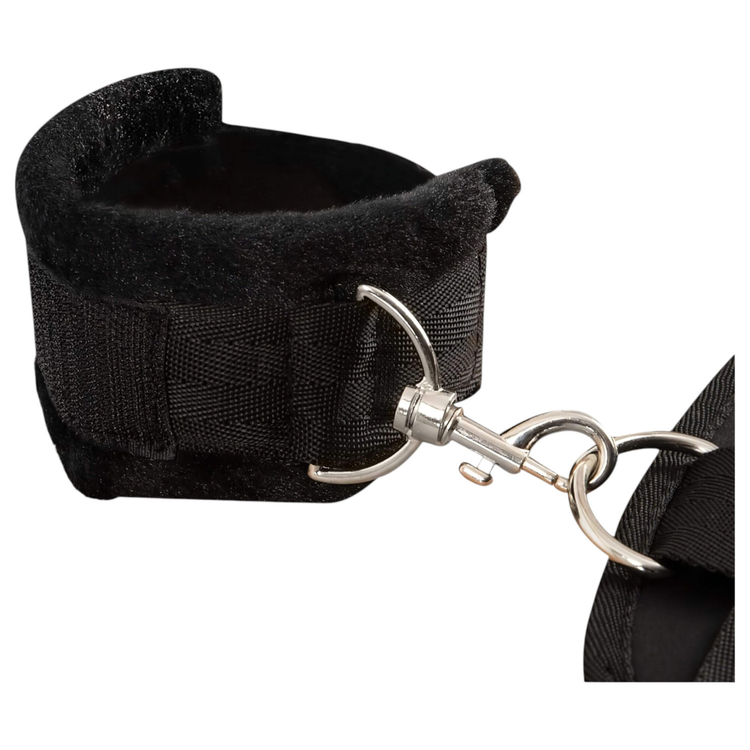• Pour les mains, des menottes à scratch détachables avec mousqueton en métal