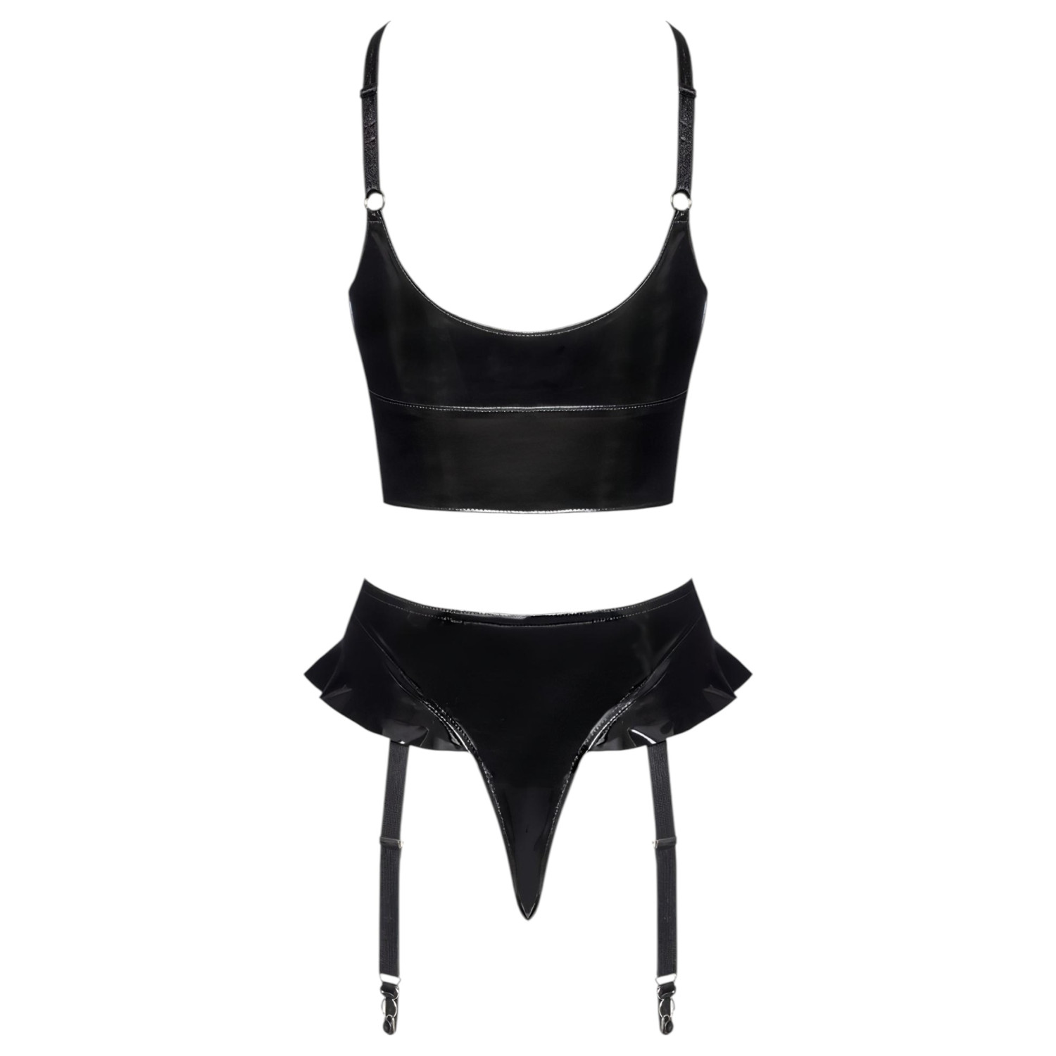 L’ensemble vinyle Black Level est une lingerie audacieuse, brillante et terriblement attirante, qui met en valeur tes courbes et booste ta confiance en toi. Le top court combiné aux jarretelles réglables et amovibles t’offre un mélange parfait de confort et de style. Son zip à l’avant et son décolleté profond ajoutent une touche unique et provocante à la tenue.