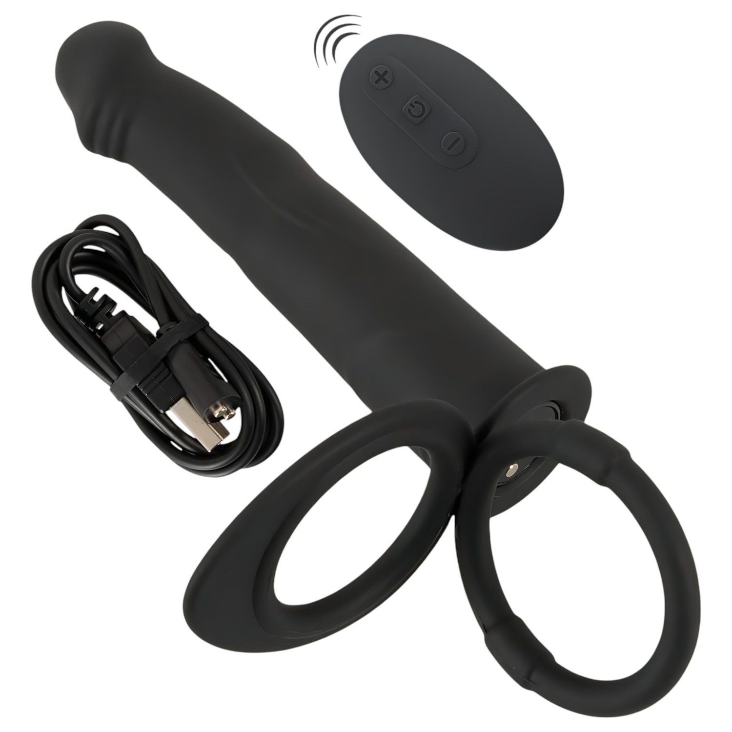 Double F Noir - Vibromasseur anal à harnais