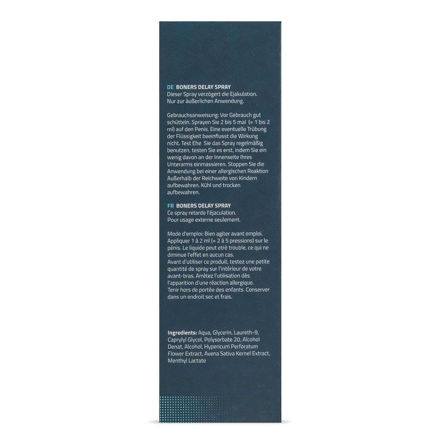 Le Boners Delay Spray est un spray spécialement conçu pour les hommes, qui aide à retarder l’orgasme et prolonge vos moments à deux tout en réduisant la sensibilité.