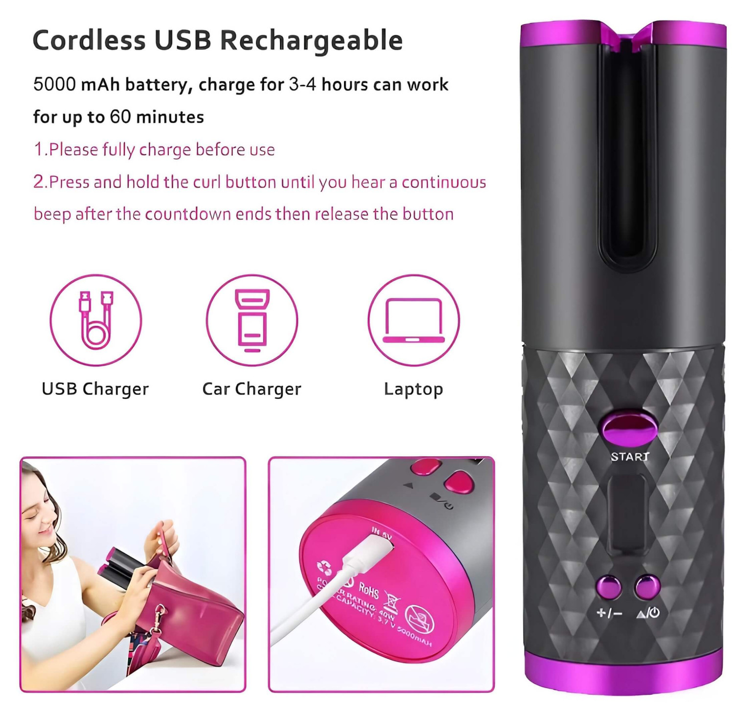 • Fer à boucler sans fil - parfait pour créer facilement des boucles sur cheveux lisses