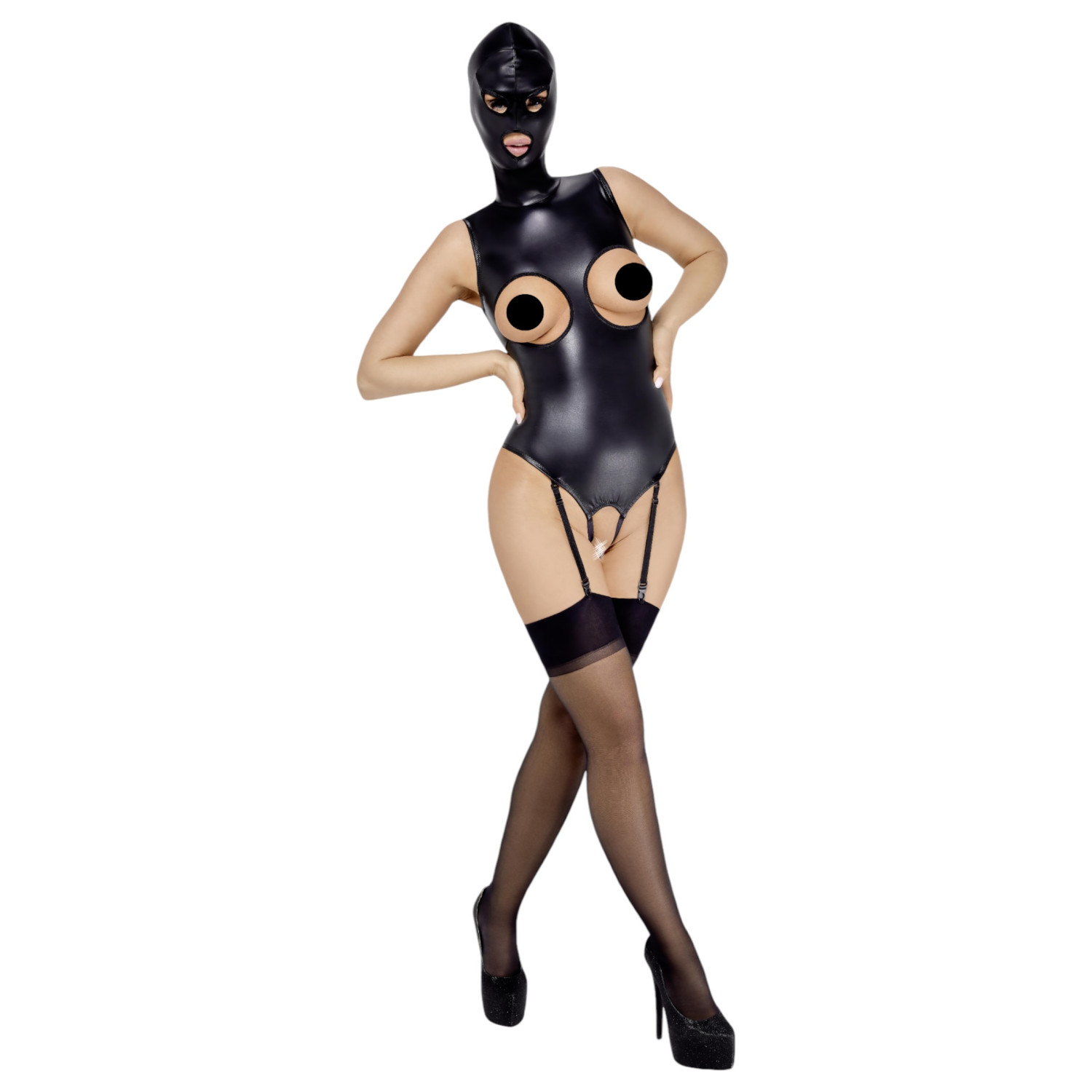 Body ultra sexy avec cagoule intégrée qui recouvre tout le visage, mais qui laisse libre accès à la poitrine et à l’intimité - et franchement, que demander de plus ?
