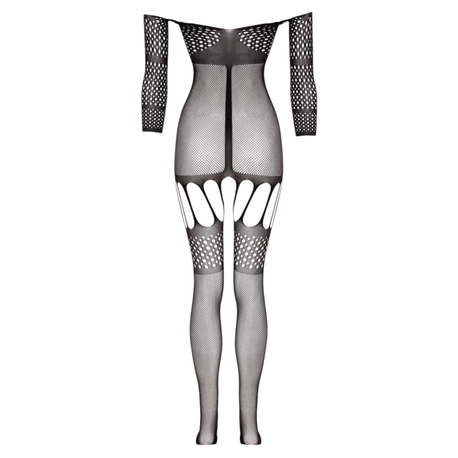 • 1 body noir à manches longues avec ouverture à l’entrejambe et effet porte-jarretelles