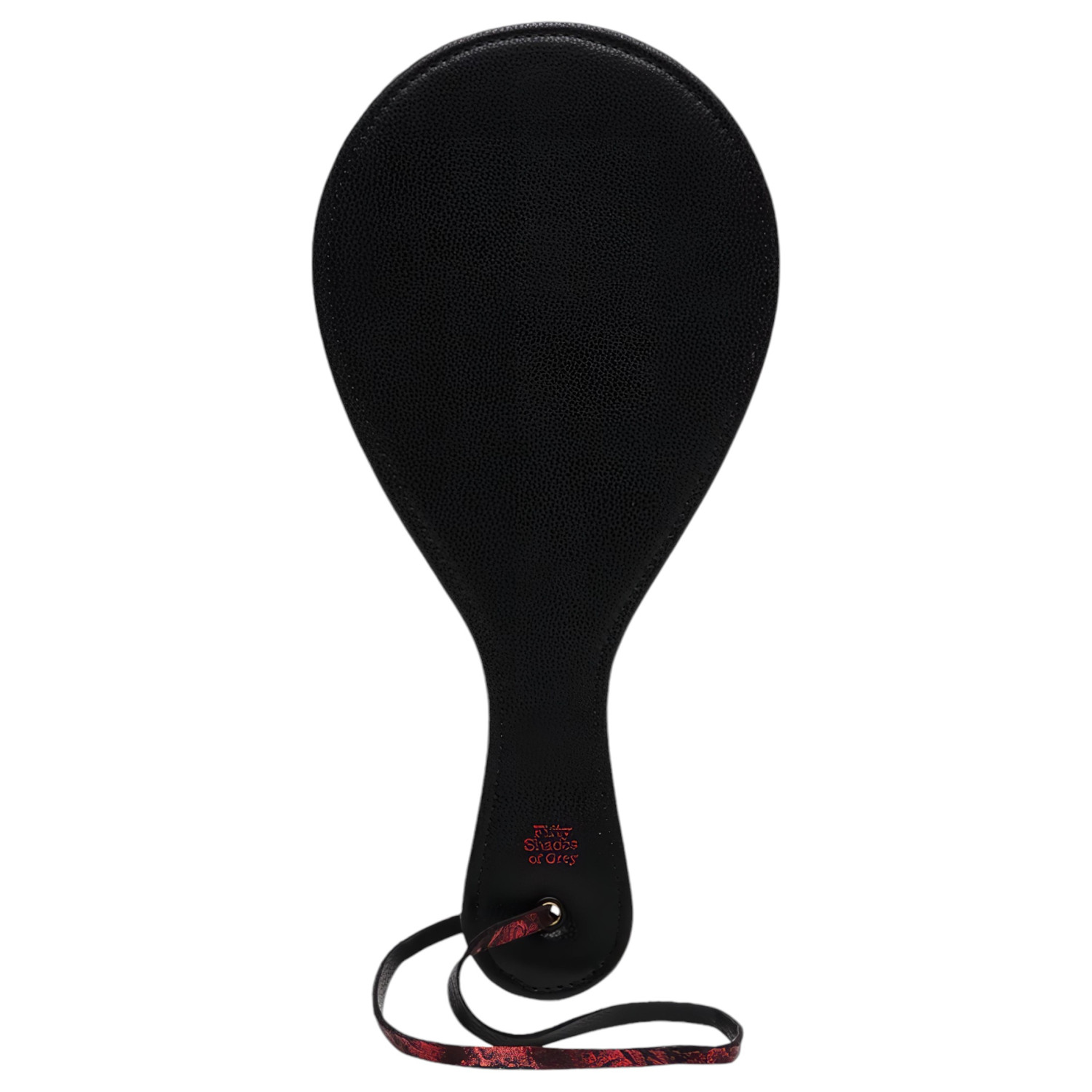 Paddle à large tête, recouvert de deux matières différentes de chaque côté : le côté en satin est doux et sensuel, tandis que le côté en simili-cuir offre des sensations plus intenses et piquantes.