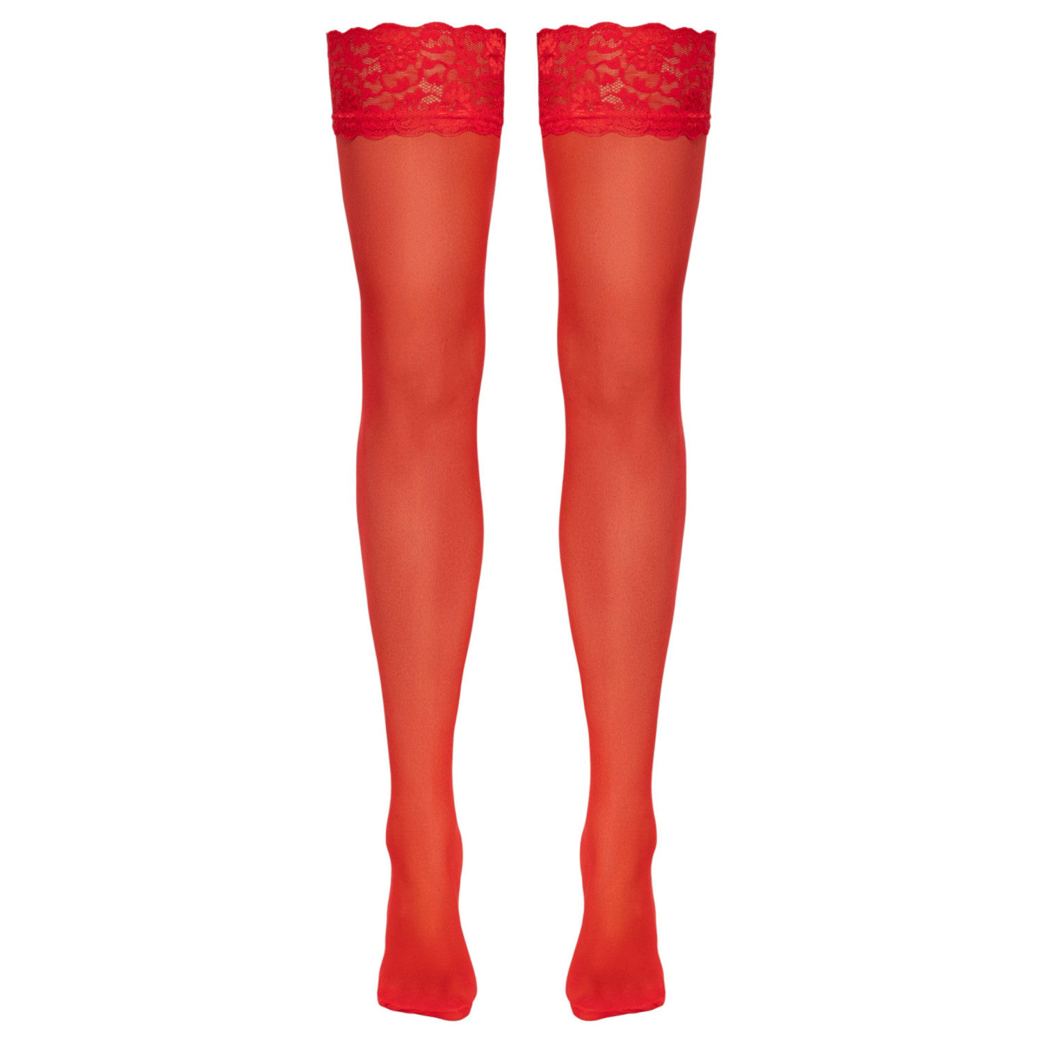 Cottelli LEGWARE – bas soyeux rouge élégant avec haut en dentelle (20 den)