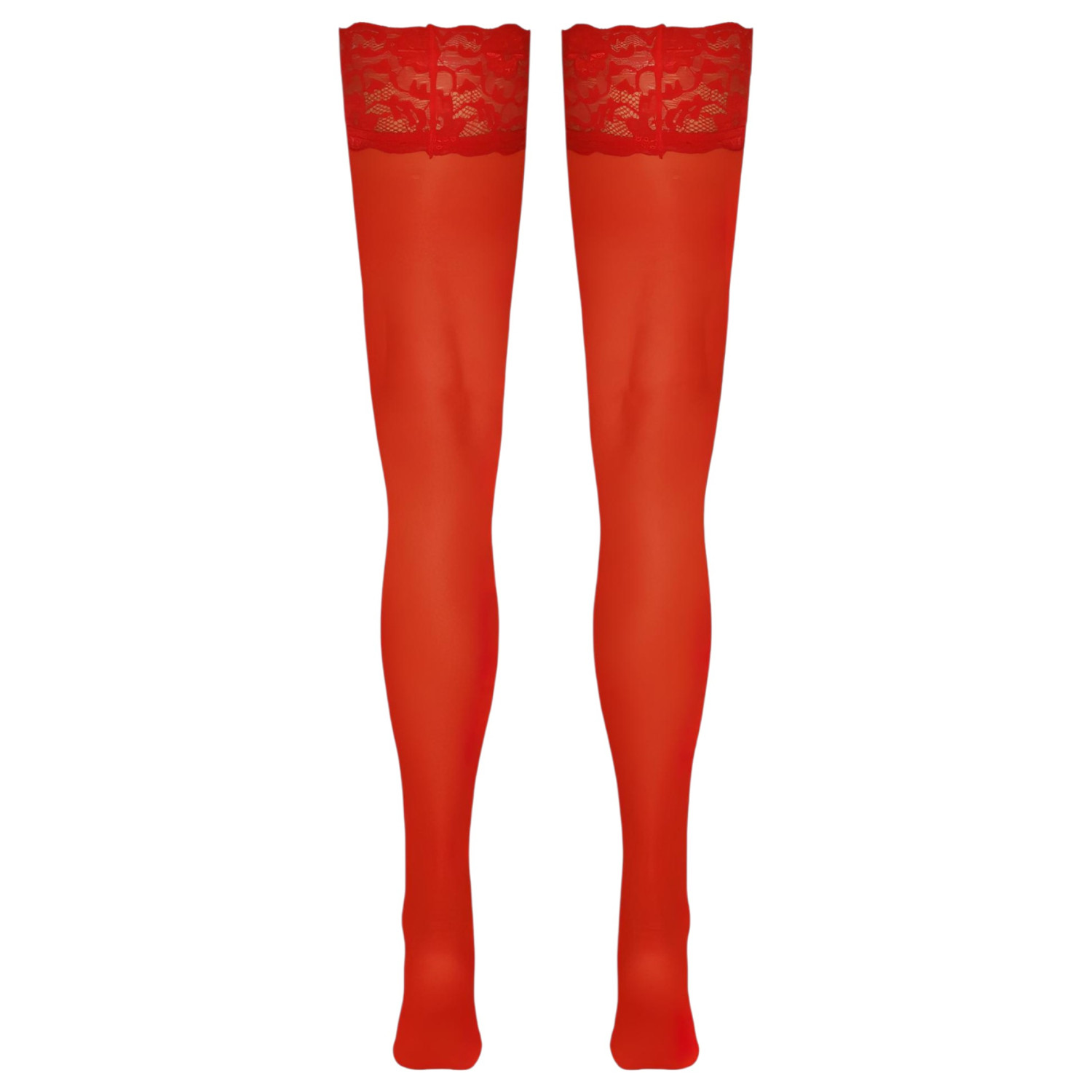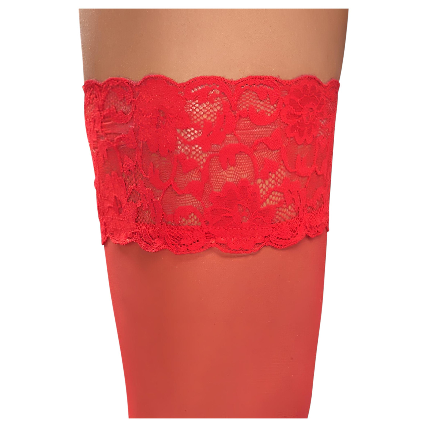 • 1 paire de bas rouges, bordure dentelle 9 cm et bande silicone