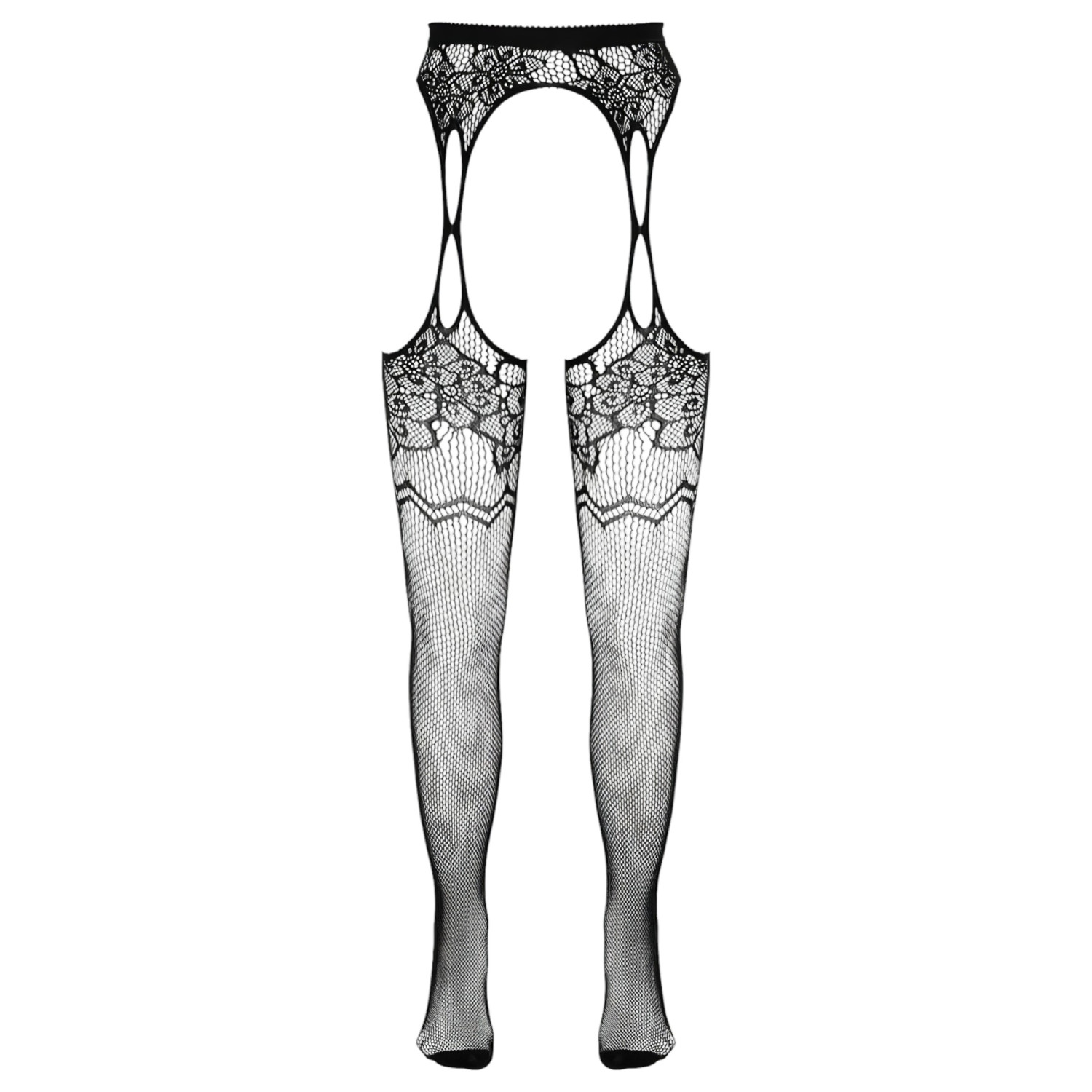 Épate tes sens avec ce magnifique collant résille effet porte-jarretelles, à la coupe ouverte ultra séduisante !