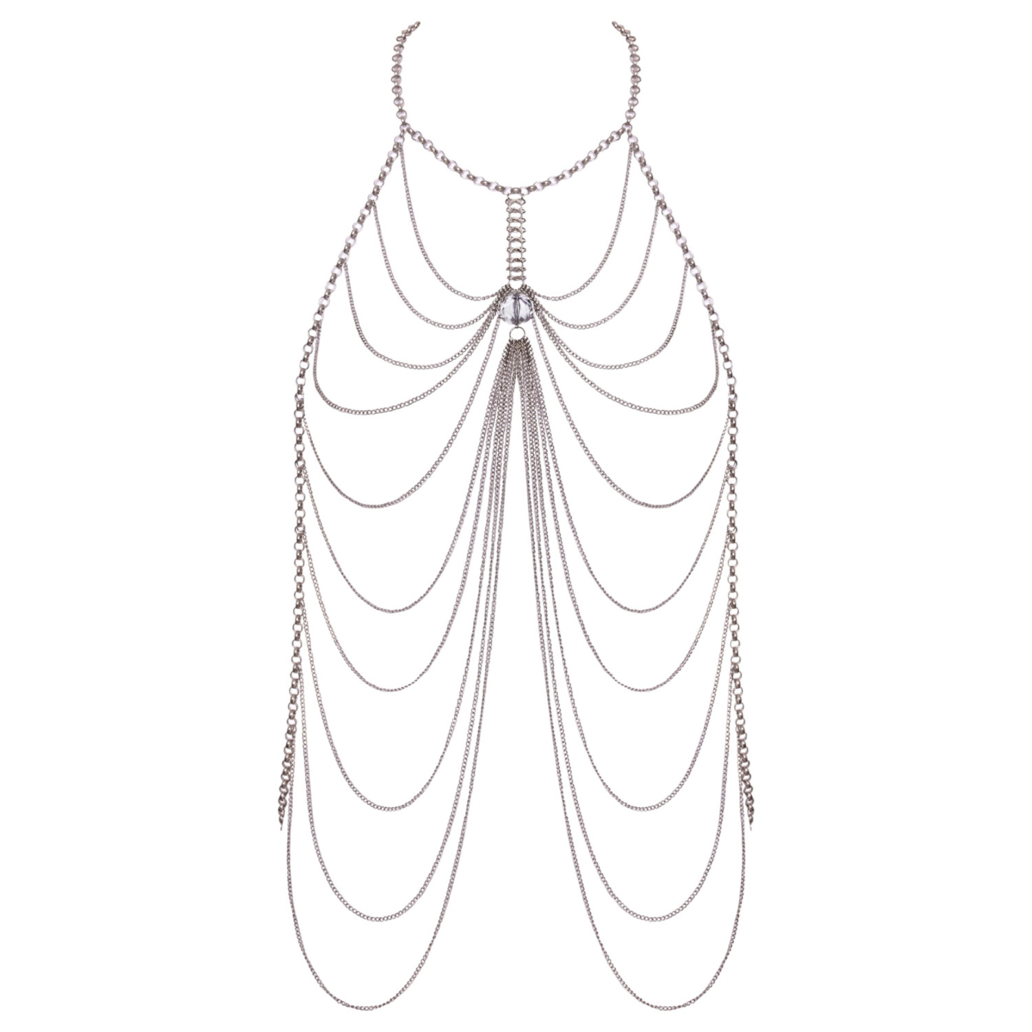 Cottelli ACCESSOIRES – bijou corporel en chaîne argentée de luxe avec un grand cristal entre les seins