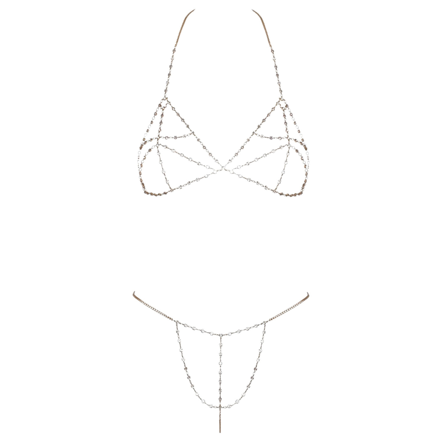 • Les chaînes brillantes ornées de strass longent la poitrine et les zones intimes pour un effet érotique assuré