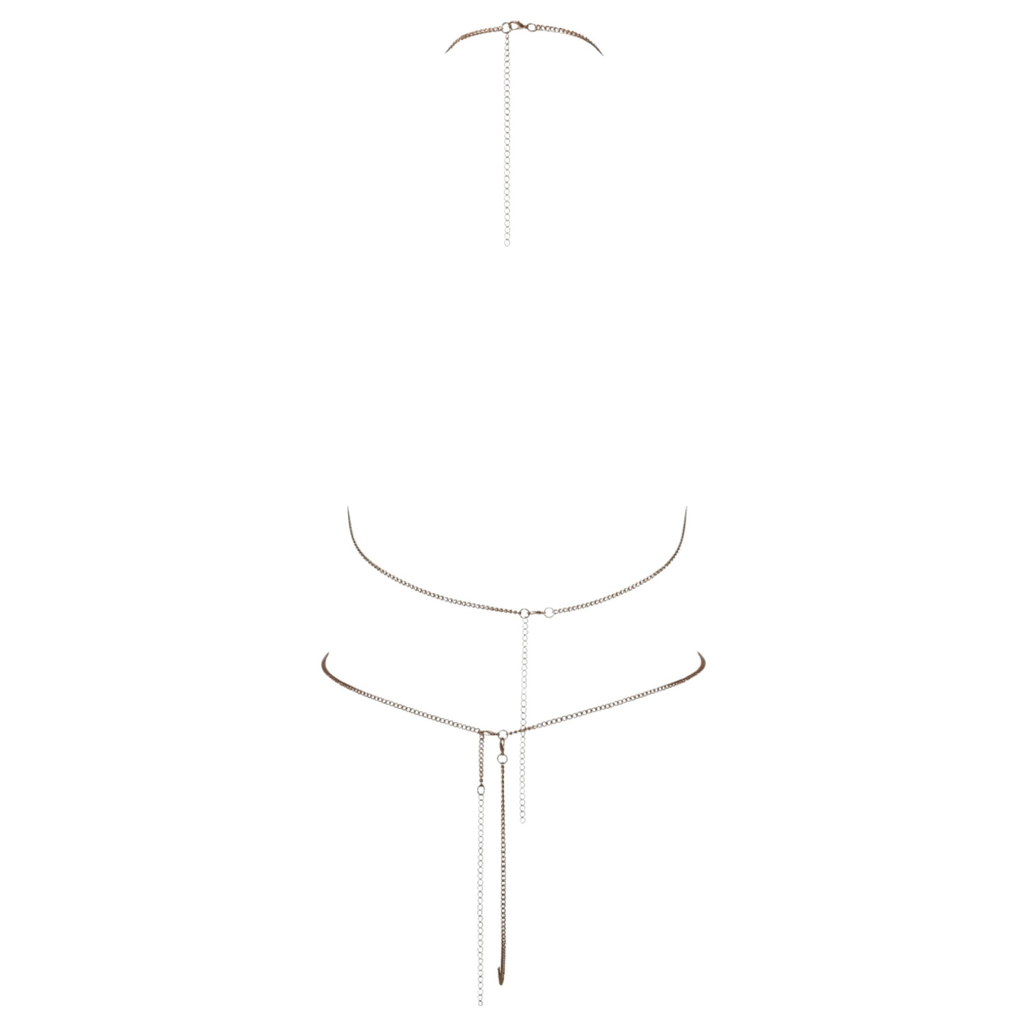 Passe la chaîne autour de ton cou et ajuste-la à la taille qui te convient grâce aux trois attaches dans le dos. Dispose joliment les chaînes brillantes sur la poitrine et les zones intimes afin de trouver le parfait équilibre entre confort et sensualité. À porter seul comme lingerie, ou combiné à un maillot de bain ou une robe près du corps pour pimenter ta tenue.