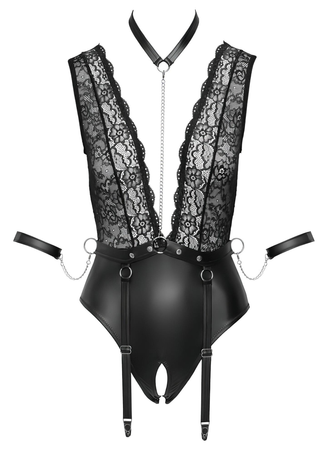 Cottelli Bondage - Body noir en dentelle avec col - XL