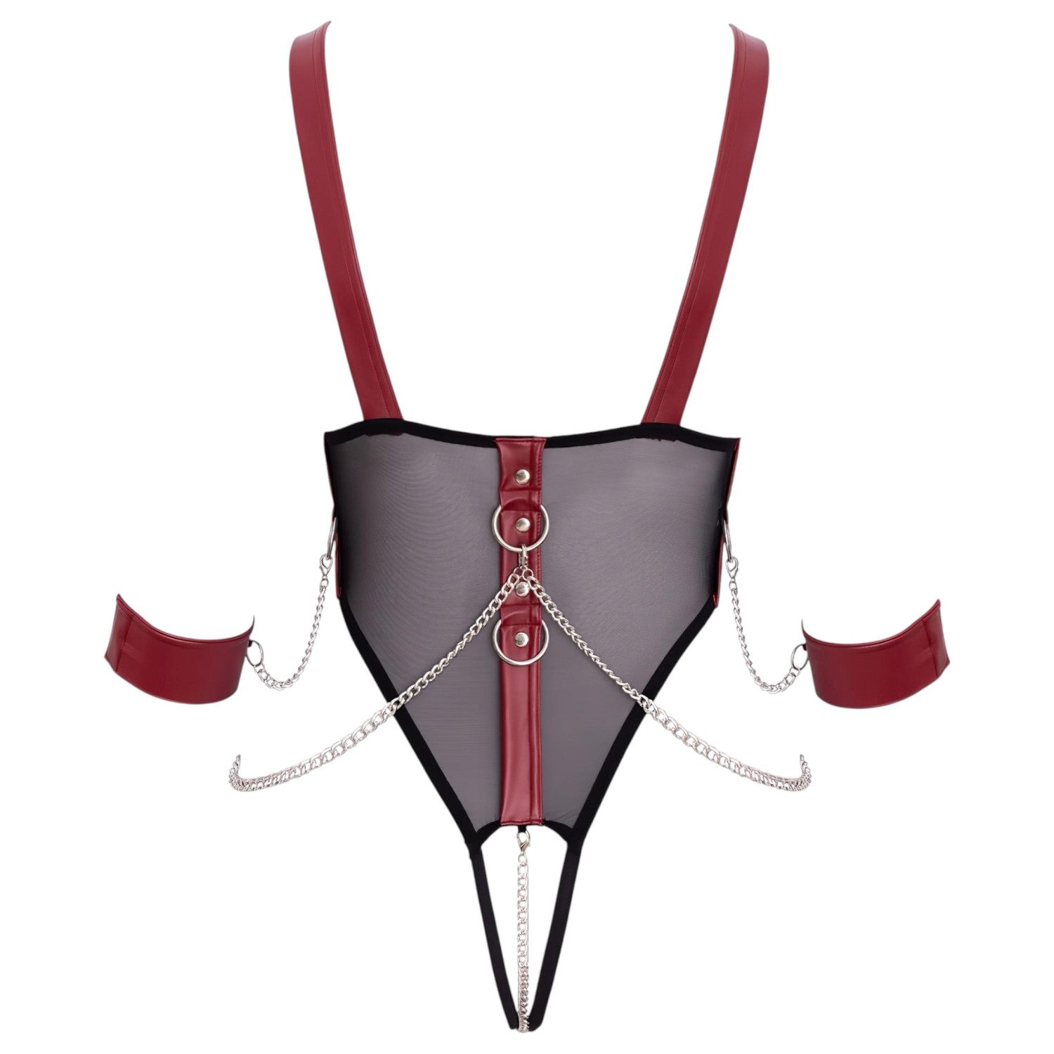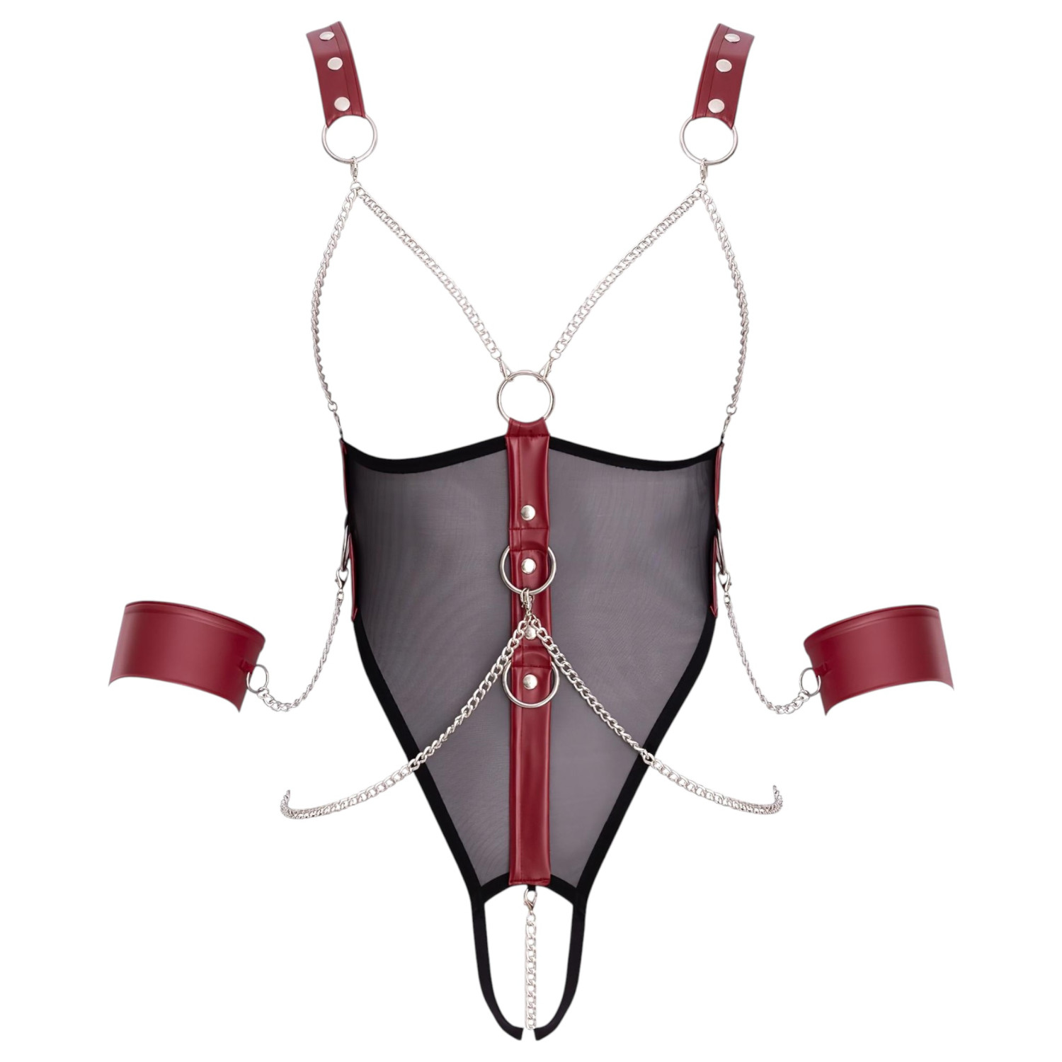 Laissez libre cours à votre passion avec le body ouvert à sangles de Cottelli Bondage avec chaîne et menottes douces!