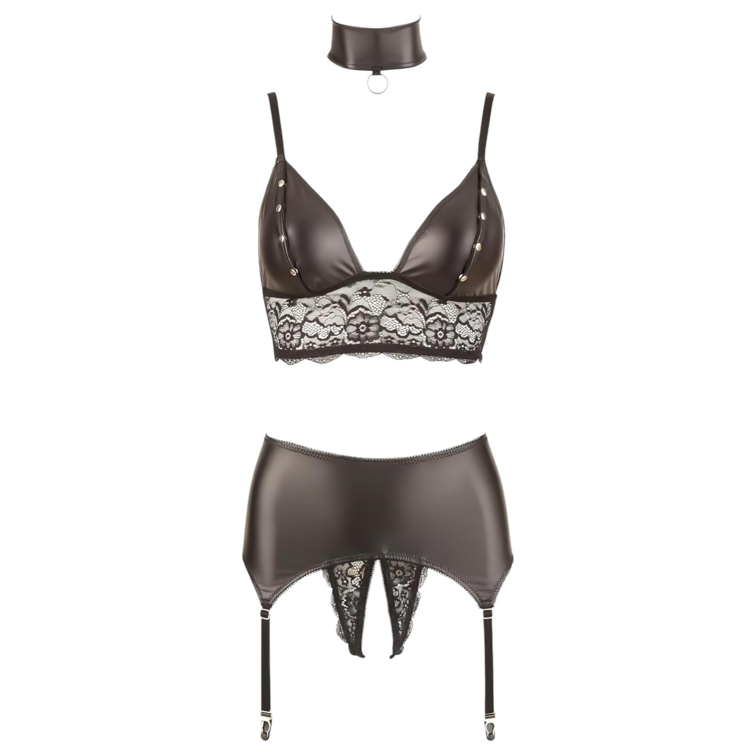 Cottelli Bondage - ensemble lingerie en dentelle brillante (4 pièces) - L