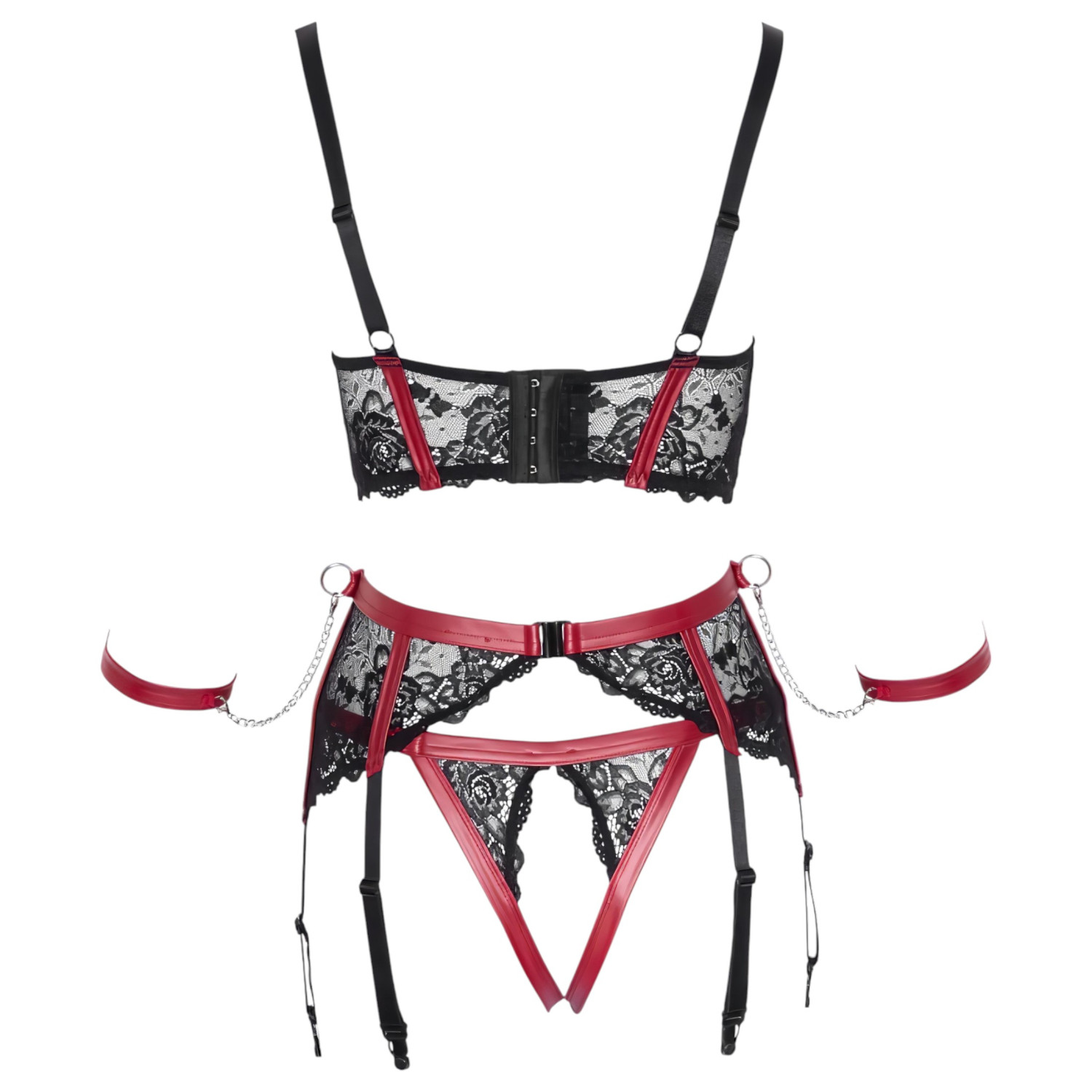 Cottelli Bondage - Ensemble rouge liftant en dentelle mate