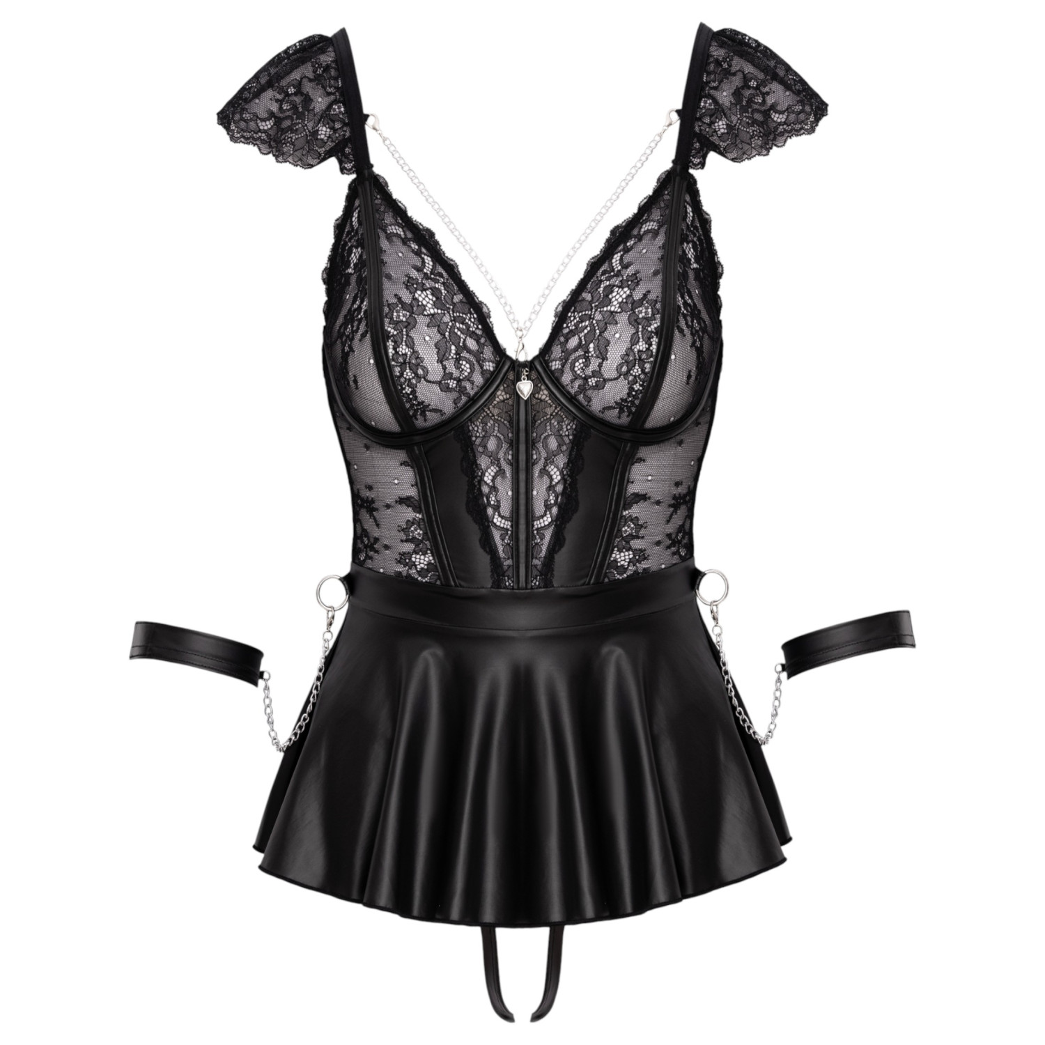 Cottelli Bondage - Robe en dentelle avec menottes (noir)