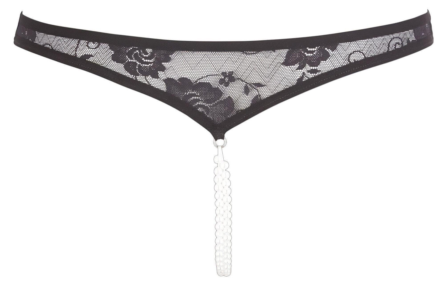 Cottelli - String dentelle ouvert avec perles (noir) - L