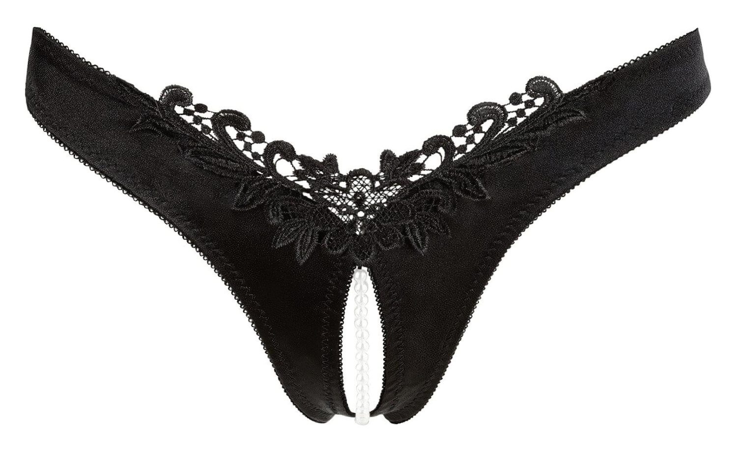 Cottelli - culotte ouverte perles et fleurs (noir) - XL