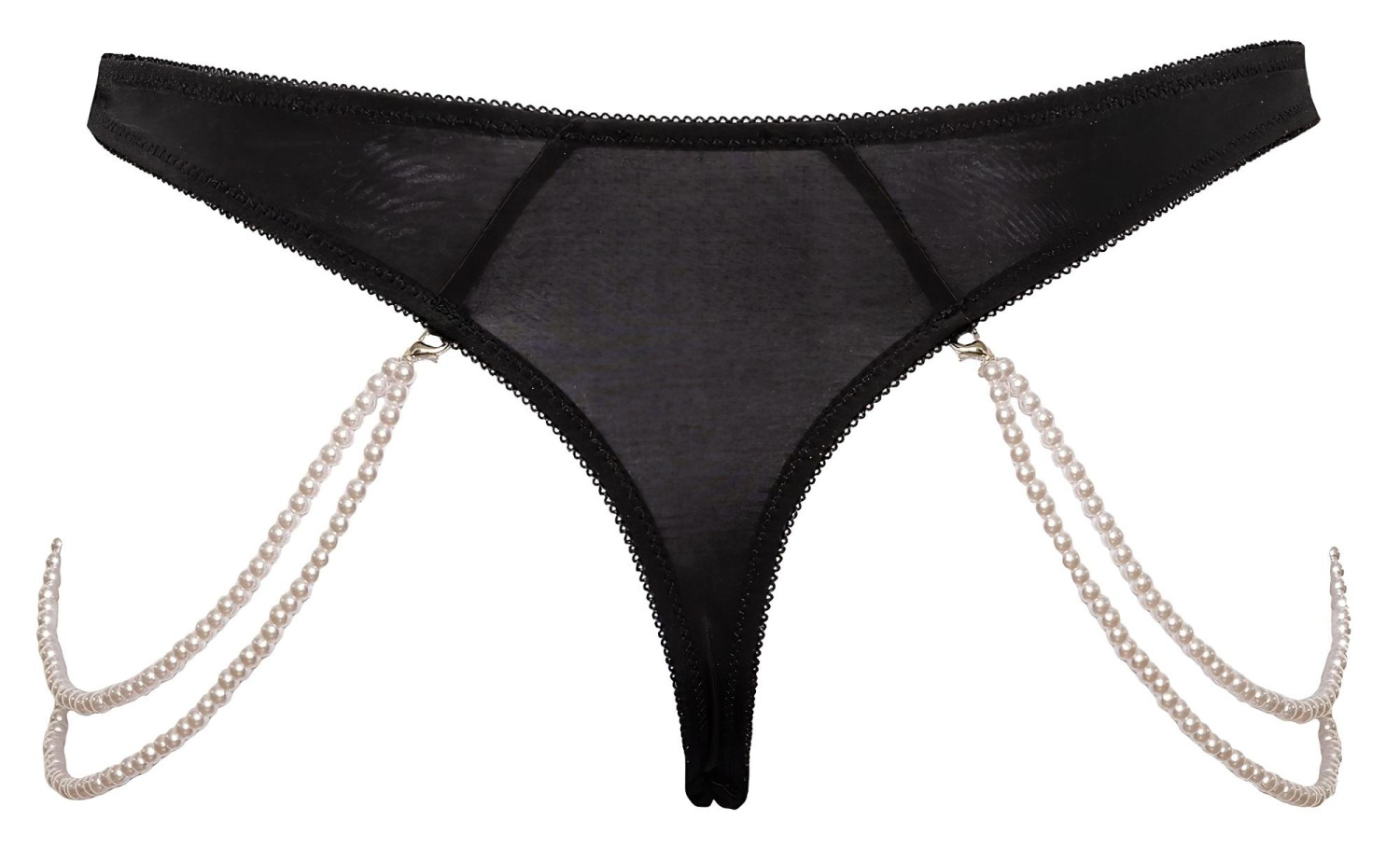 • Couleur : Tanga noir avec chaînes de perles blanches