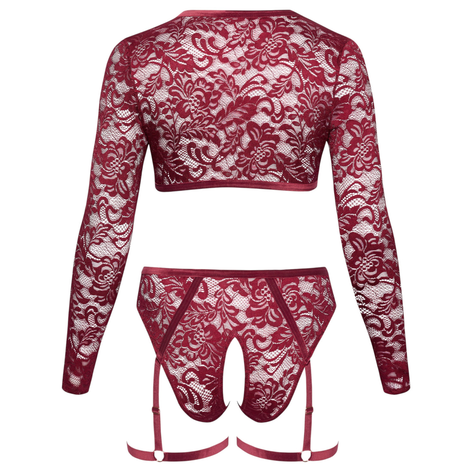 Cottelli Curves - Ensemble en dentelle à manches longues (rouge) - 2XL