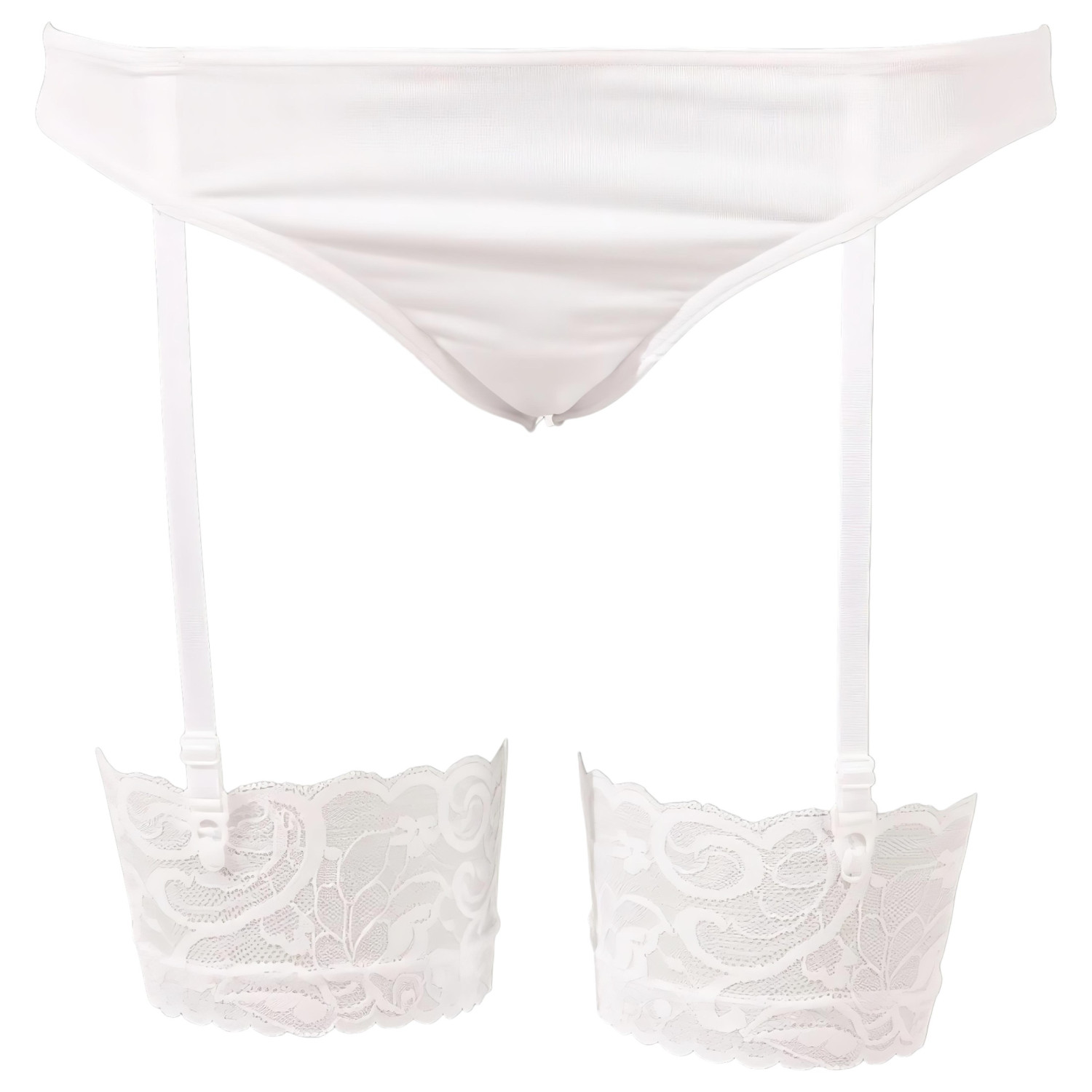 • Bas en dentelle : Blancs, matières extensibles légèrement satinées, surmontées d’une bande en dentelle à motifs fleuris pour une touche élégante.