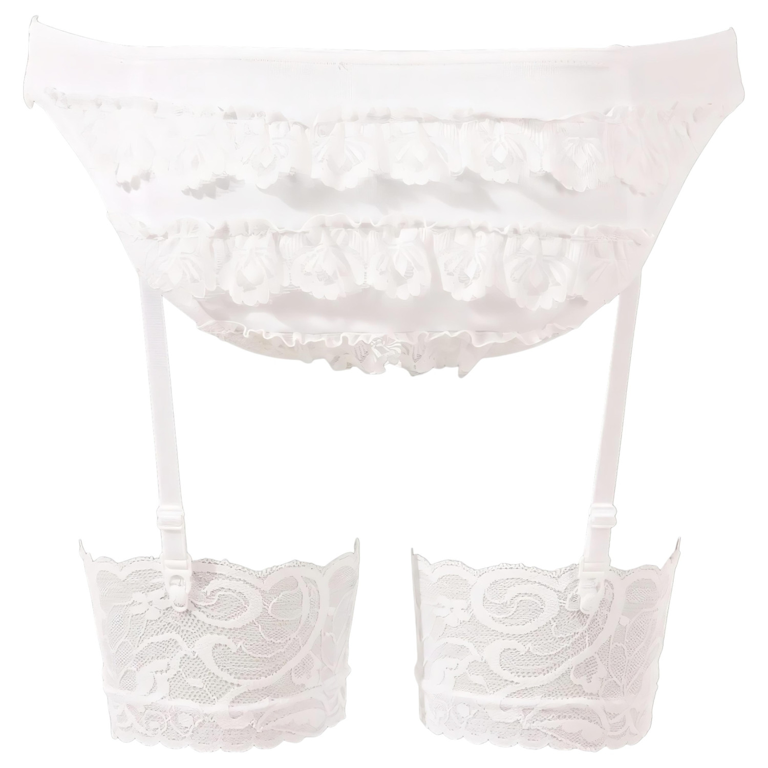 • Culotte froufroutante avec porte-jarretelles : Matière souple, petits volants en dentelle sur les fesses et 4 attaches réglables pour les bas, pour un ajustement parfait.
