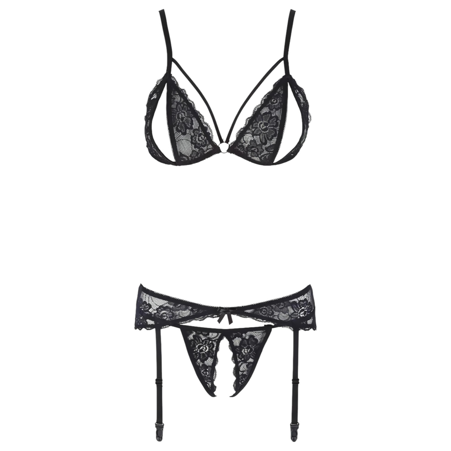 Cottelli - Ensemble lingerie ouvert en dentelle (noir)