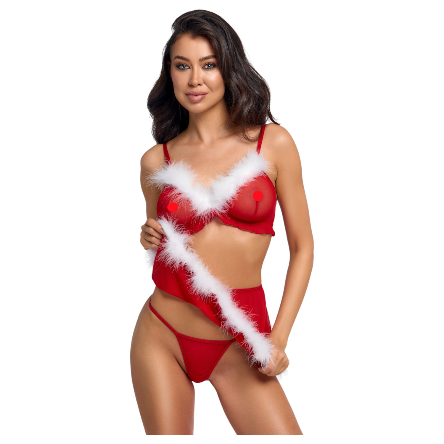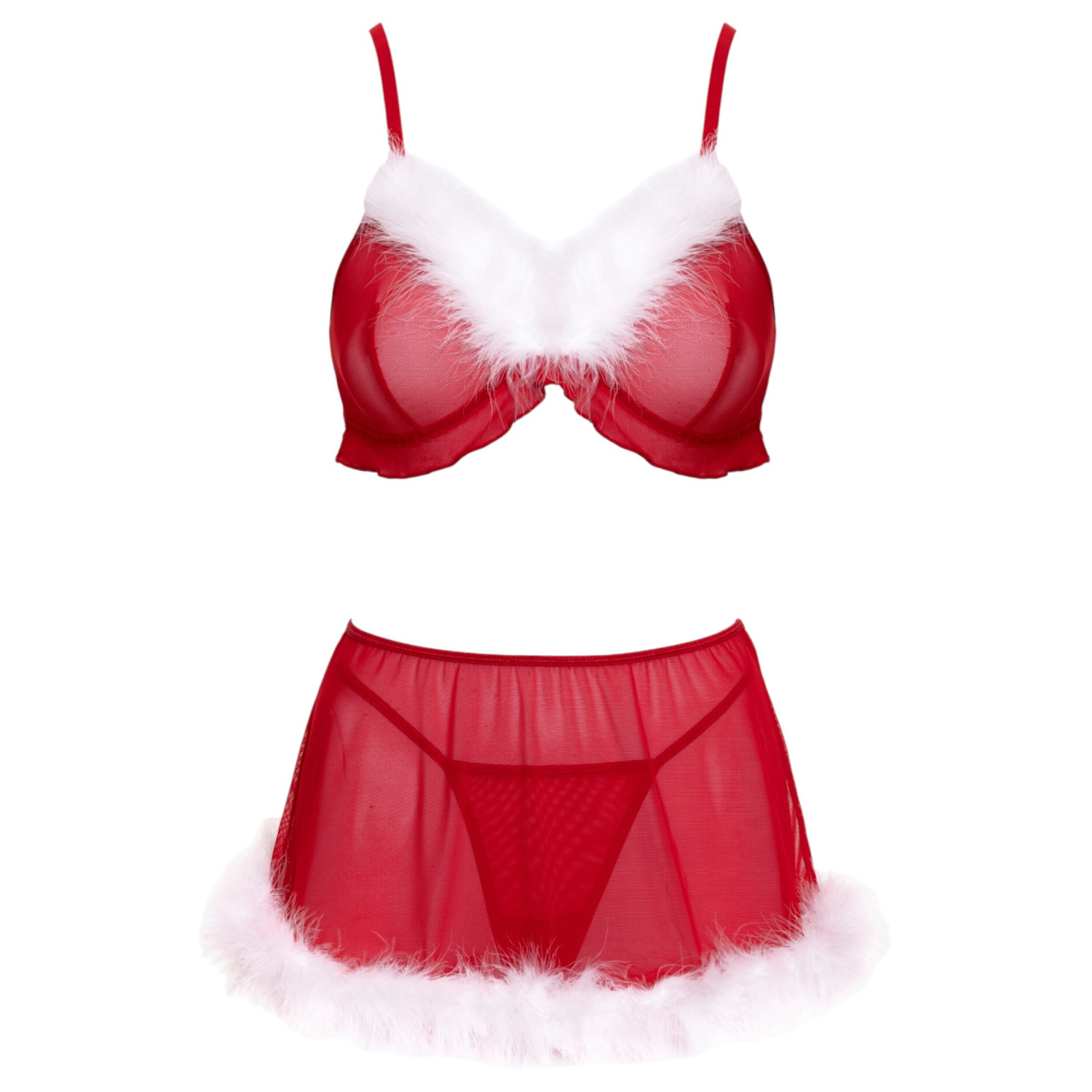 Cottelli - Ensemble de lingerie de Noël à 3 pièces avec décoration de plumes, un choix festif et sensuel qui combine parfaitement séduction et élégance.