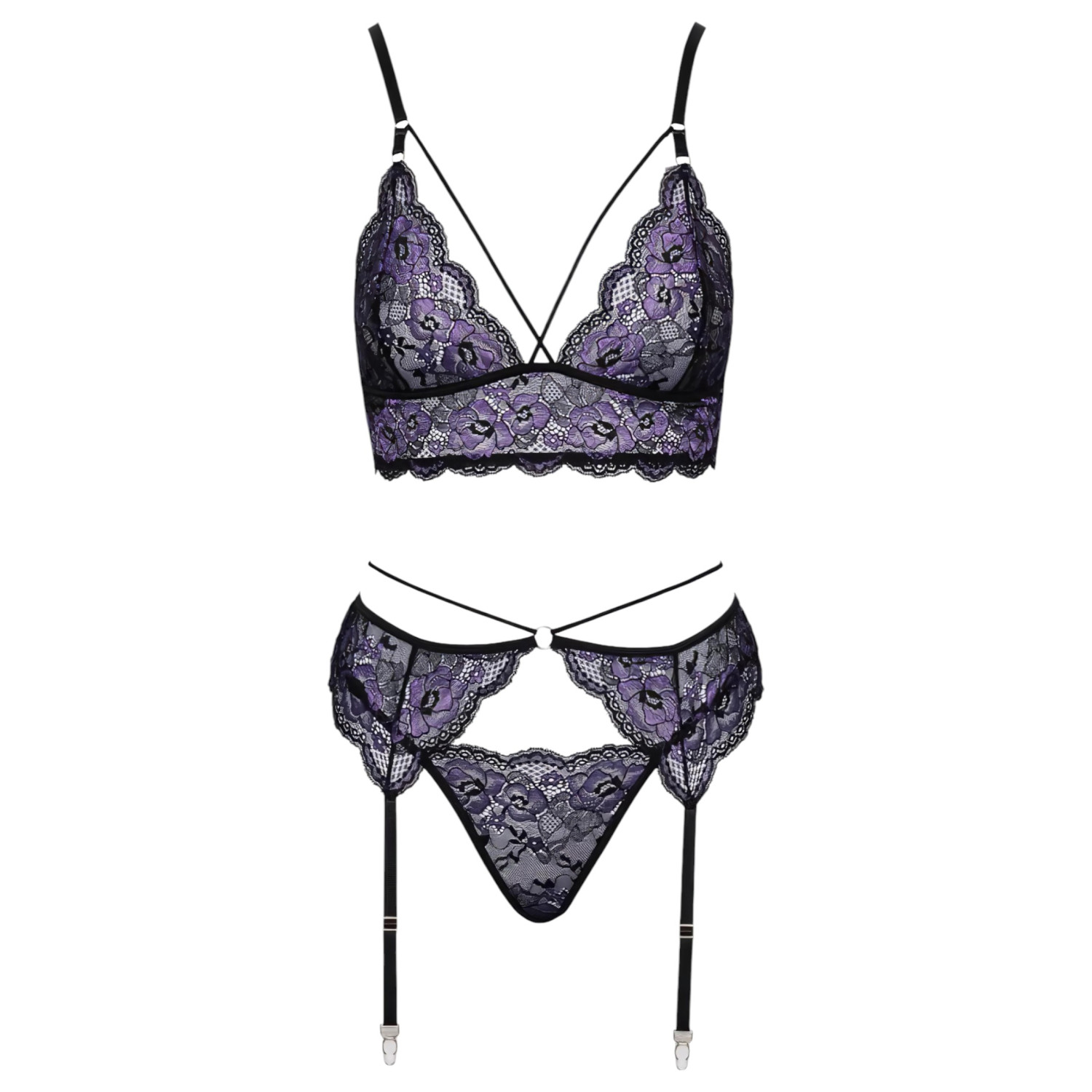 Avis Cottelli - Ensemble 3 pièces dentelle (noir-violet) - XL