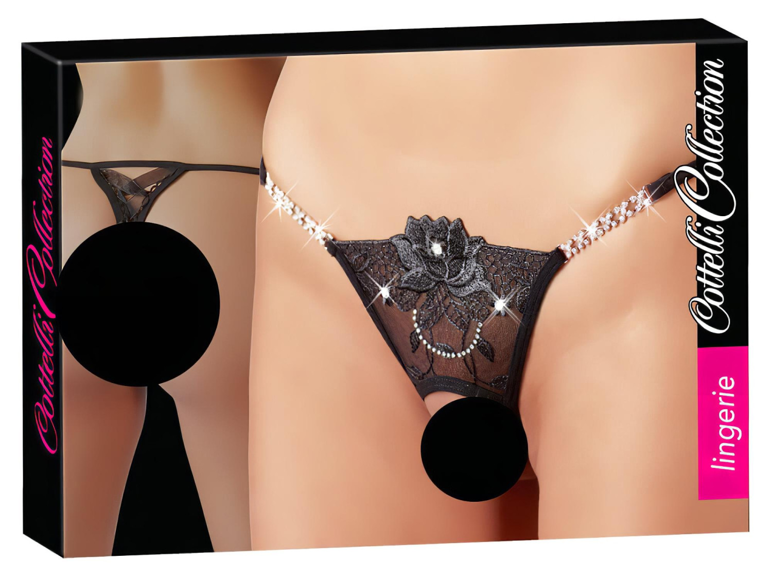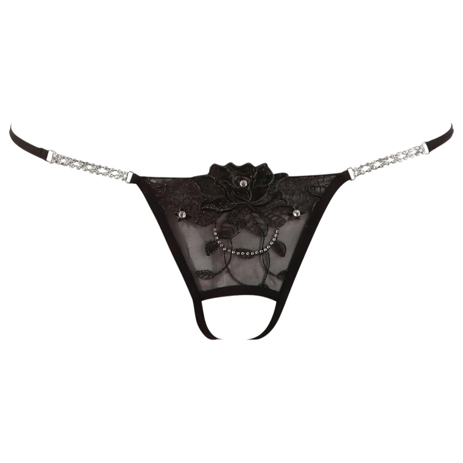 Culotte sexy pour rendez-vous, décorée de motifs floraux brodés et de strass étincelants.