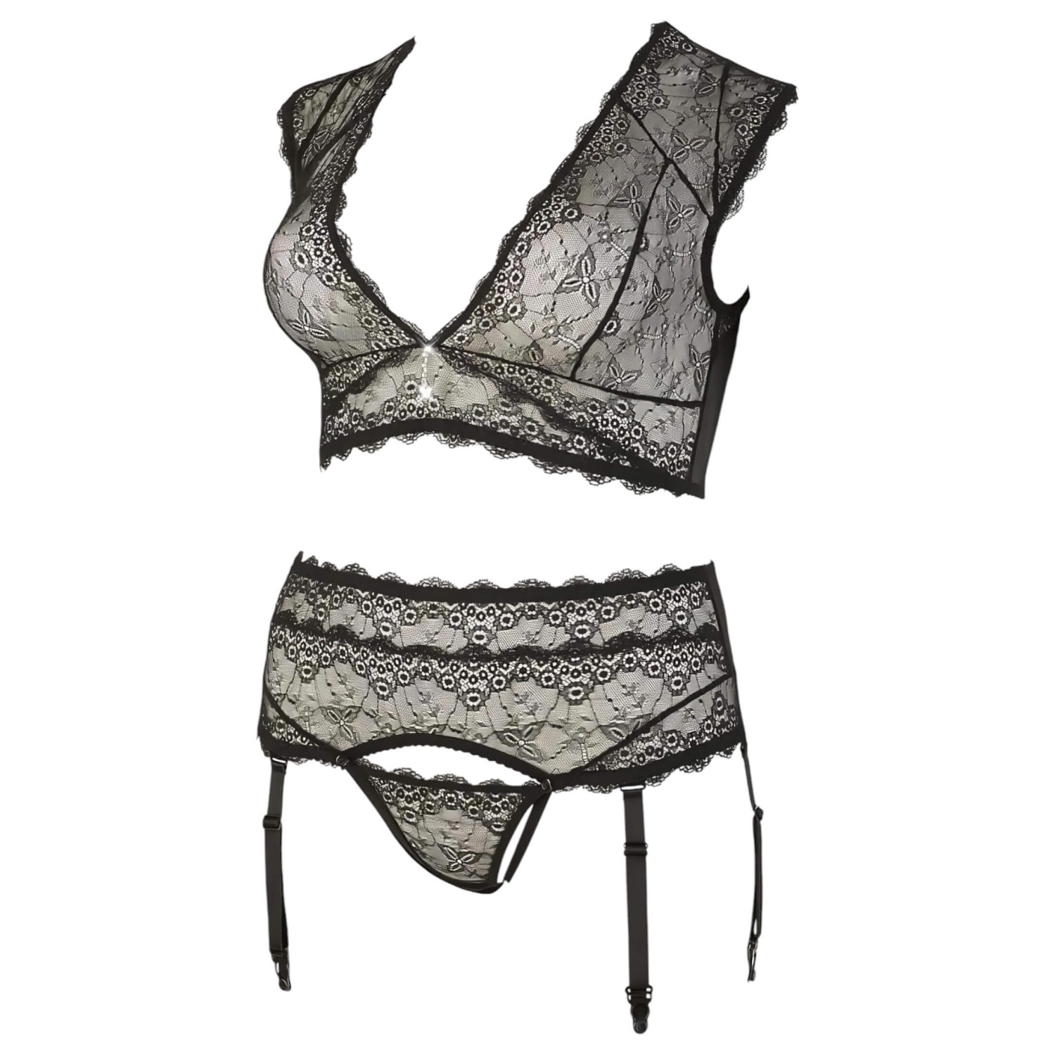Cottelli Plus Size - ensemble lingerie strass & dentelle (noir) - XL