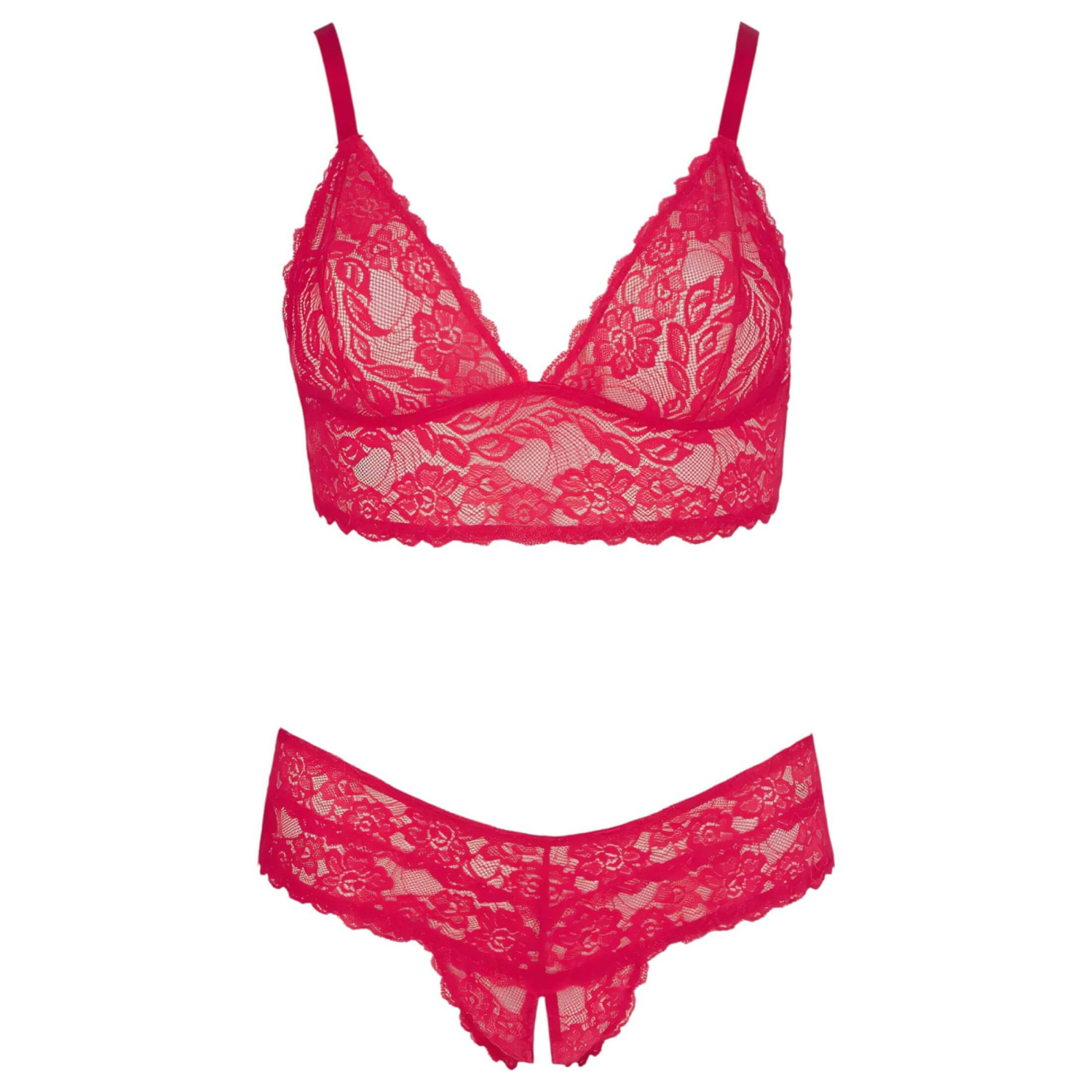 Cottelli Plus Size - ensemble soutien-gorge en dentelle douce (rouge)