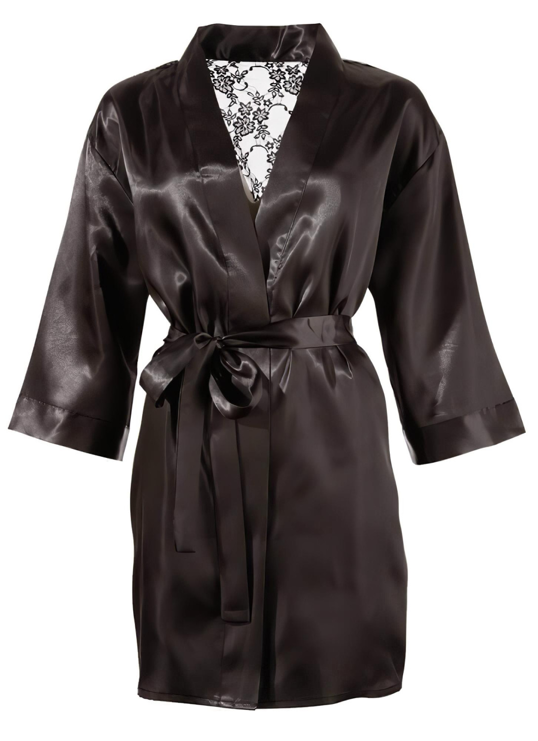 Avis Cottelli - Kimono en satin et dentelle court (noir) - L/XL