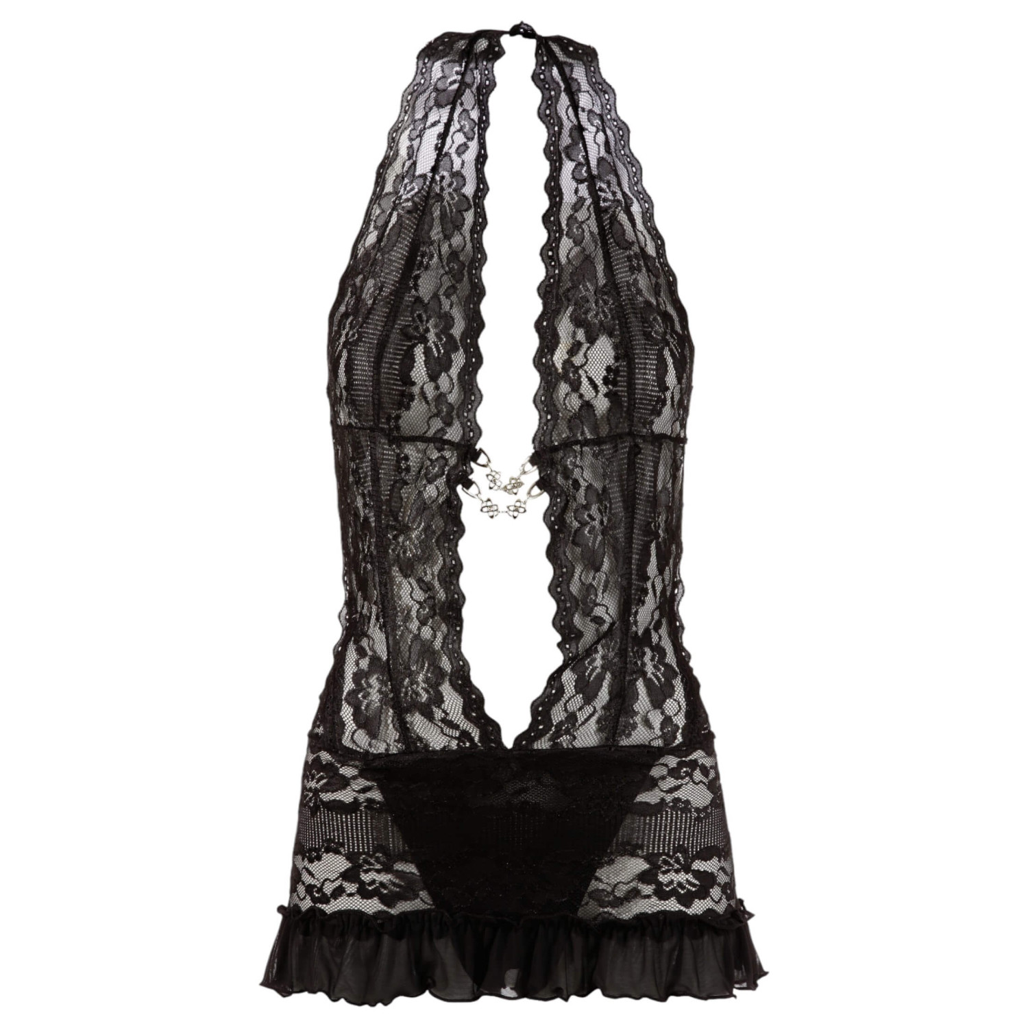 • 1 robe en dentelle fleurie avec tanga intégré.