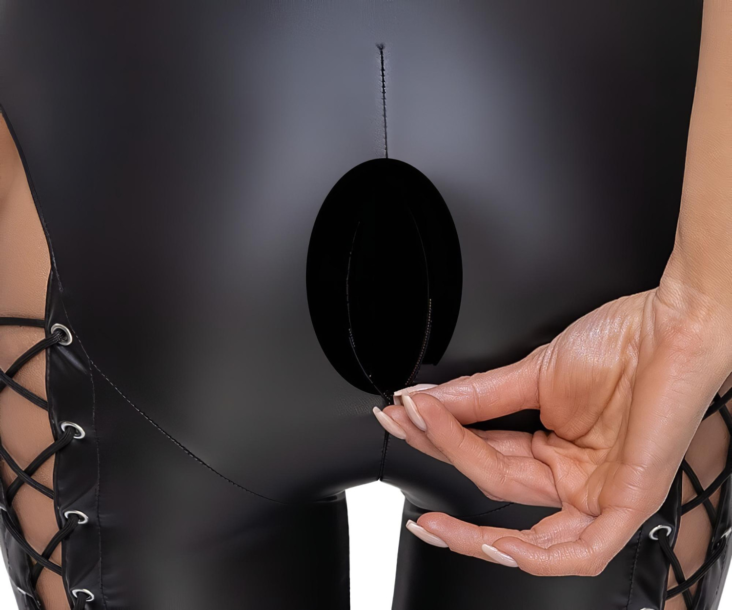 • Jambes ouvertes devant et derrière avec laçage : un style unique et osé.