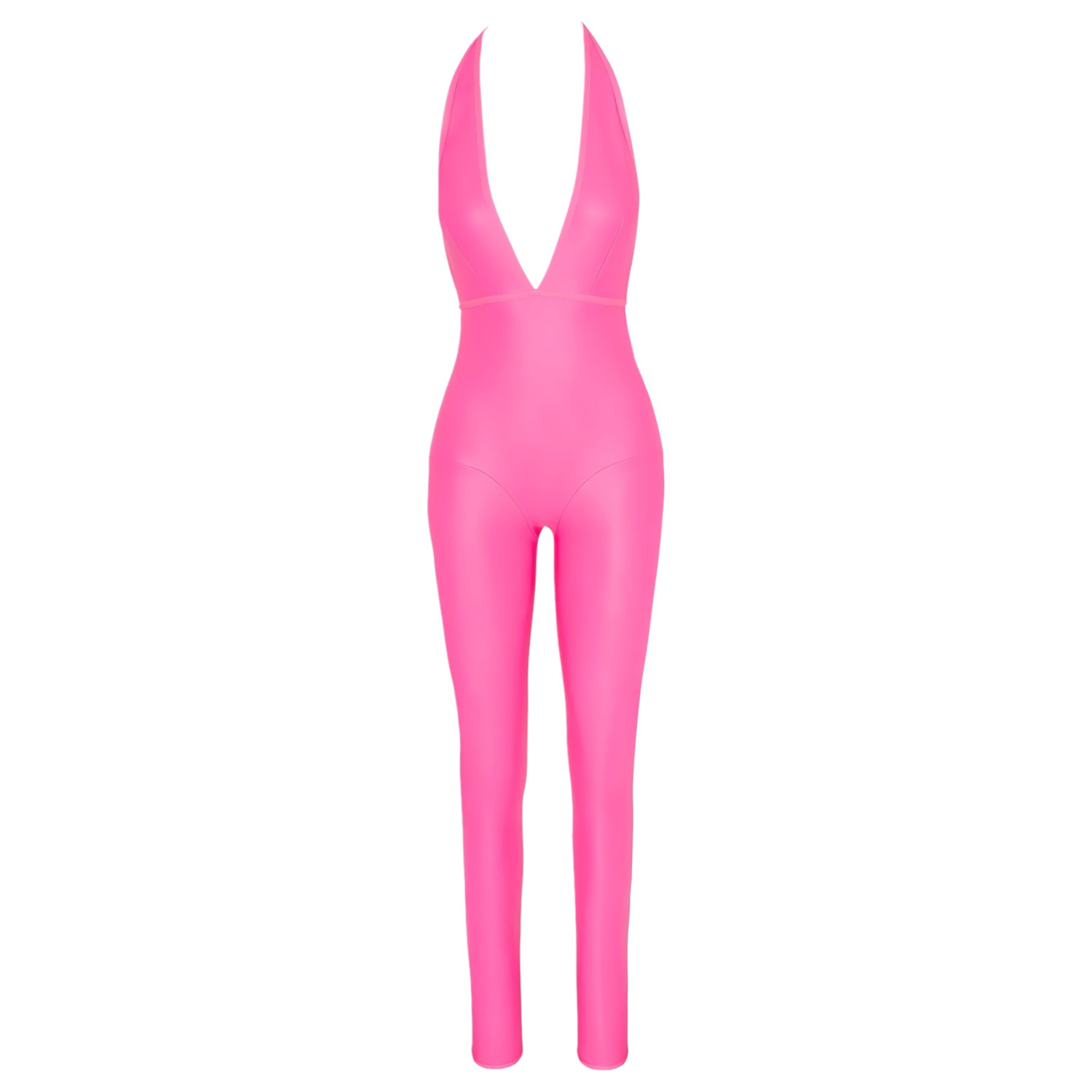Avec son dos ultra plongeant et travaillé, cette combinaison brillante met vraiment en valeur la silhouette, surtout grâce au string assorti qui souligne magnifiquement la ligne du dos.