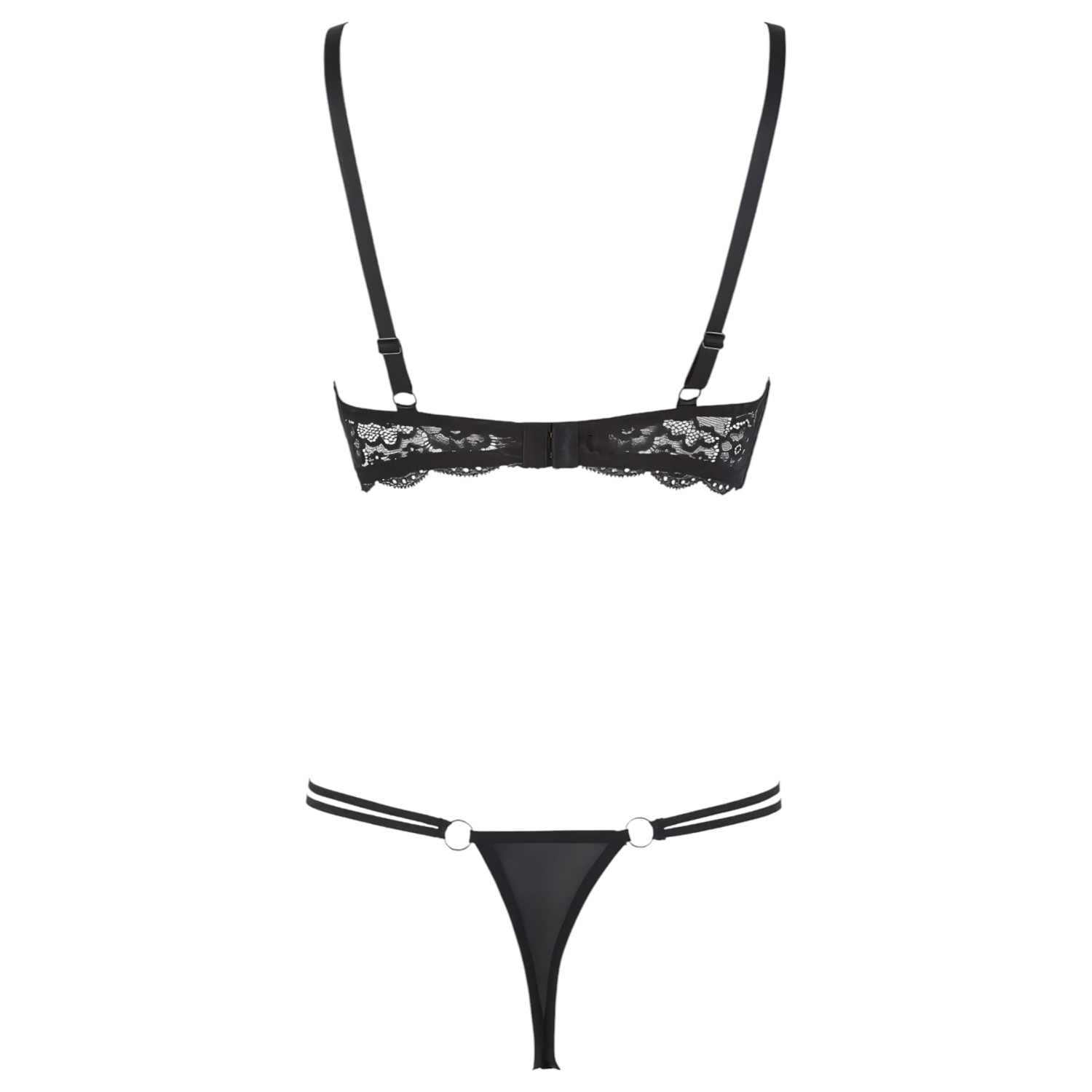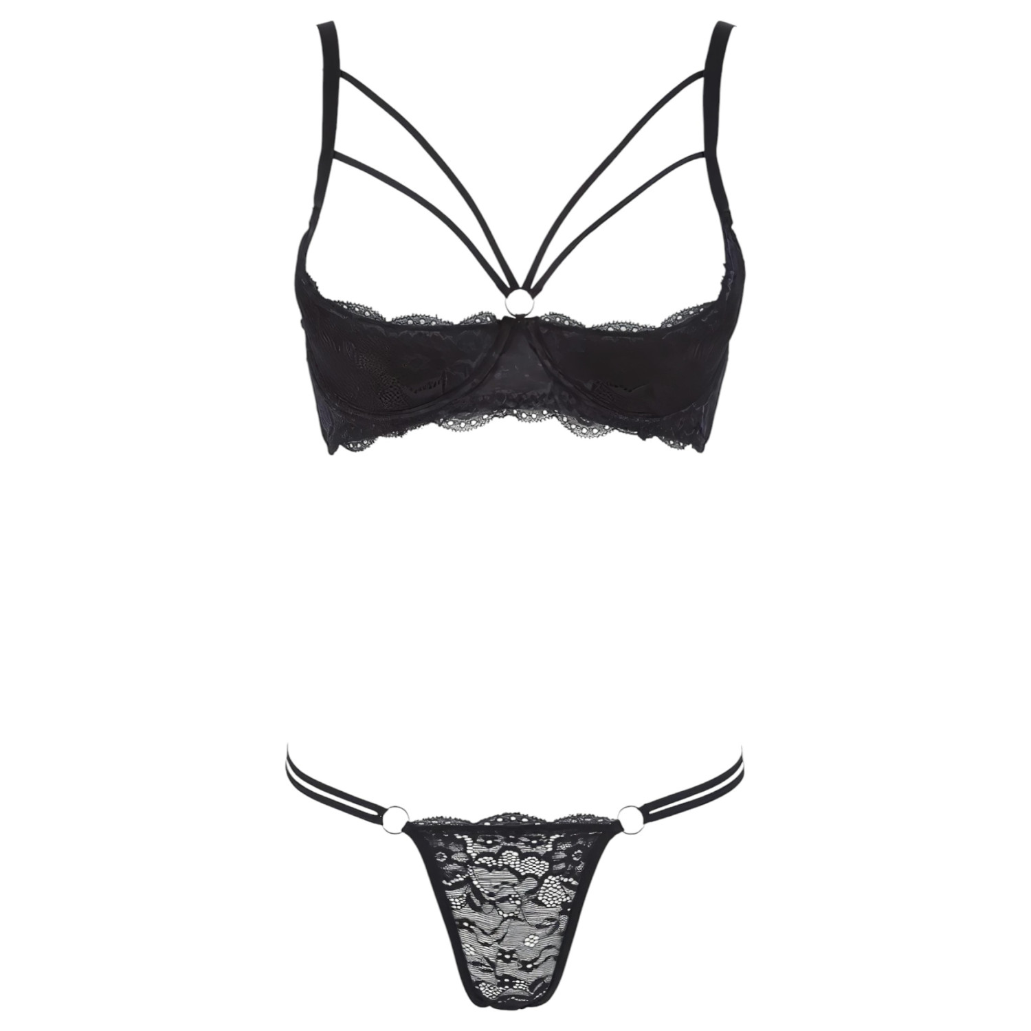 Cottelli - Soutien-gorge anneau & tanga (noir) - 80C/M