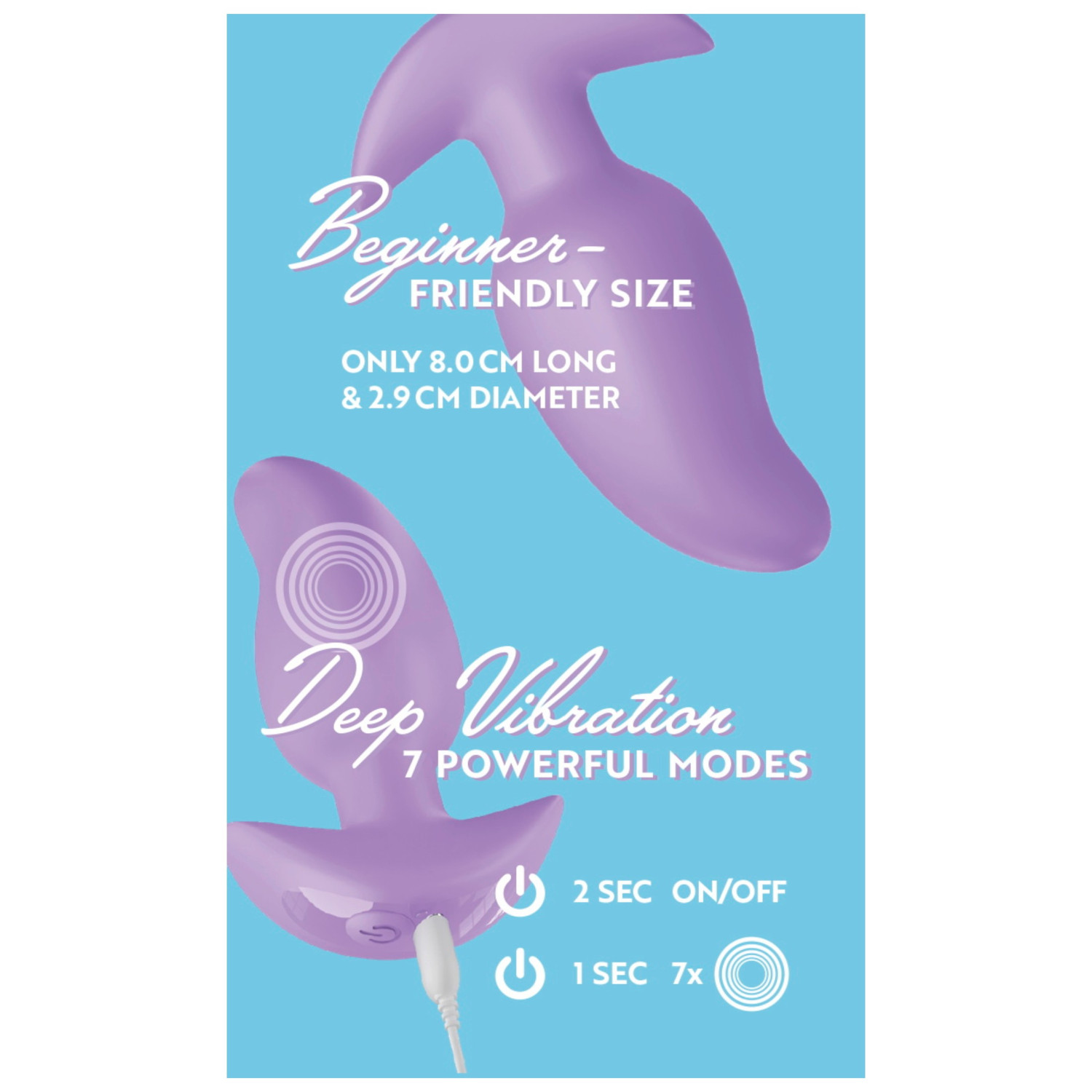 Petit mais puissant compagnon pour explorer les plaisirs anaux – le Cuties Mini plug anal vibrant (violet) vous introduit dans l'univers des plaisirs anaux de manière ludique, douce et sécurisée!