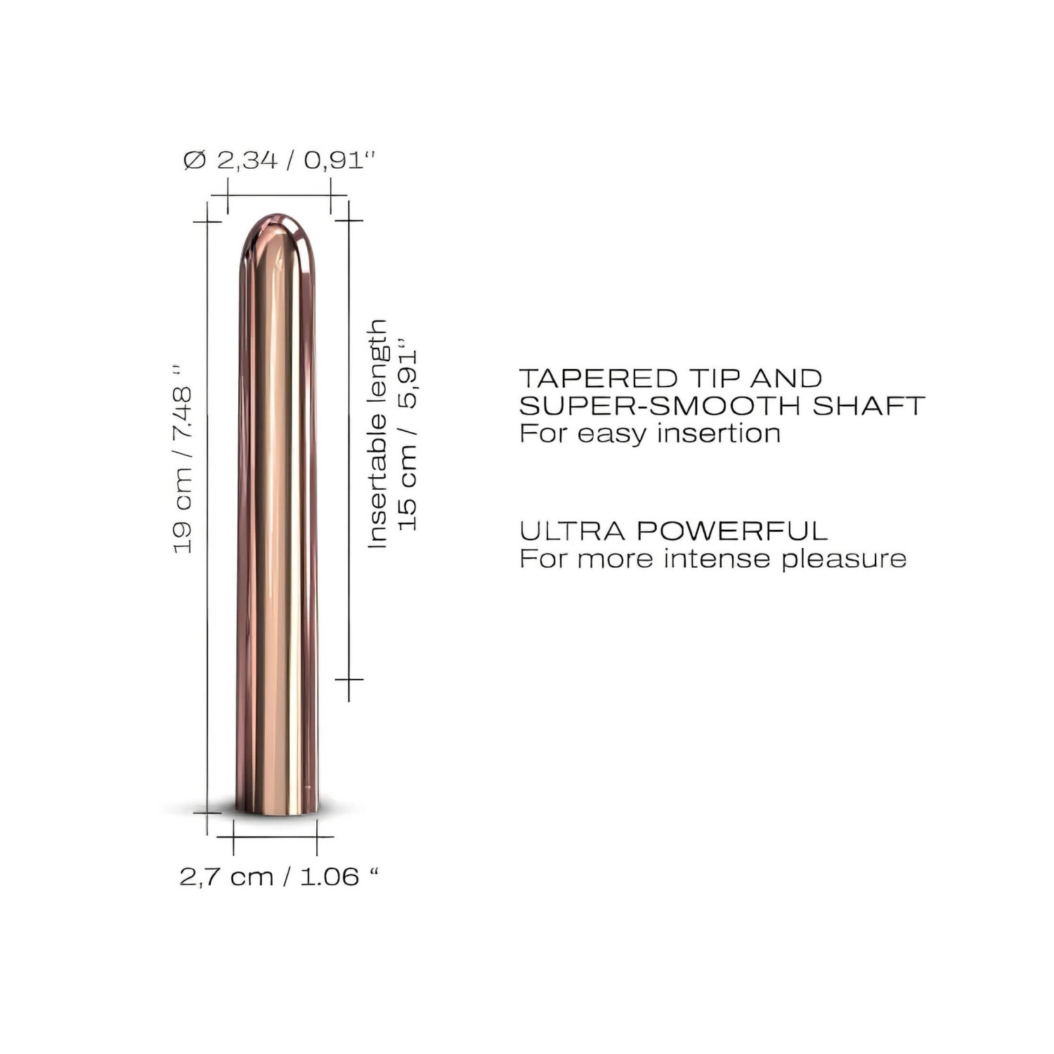 • Corps rigide, finition métal brillante - reste en place dans toutes les positions, peut s’utiliser aussi en stimulateur externe, avec un look chic et moderne