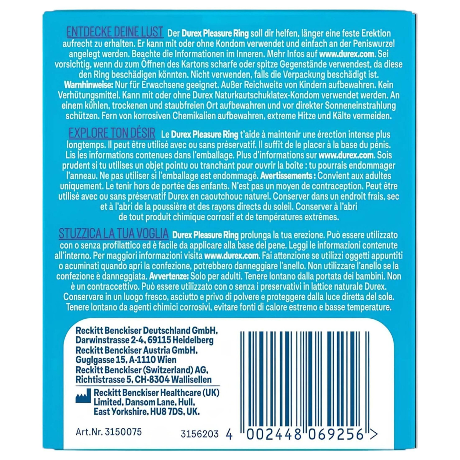 La Durex Pleasure Ring prolonge le plaisir et t’aide à garder une érection bien dure, pour des moments plus intenses. Grâce à sa conception ultra flexible et à ses parois épaisses, la circulation sanguine est efficacement maintenue tout en restant confortable à porter. Sa matière en silicone donne une sensation douce et agréable sur la peau, et elle se lubrifie facilement.